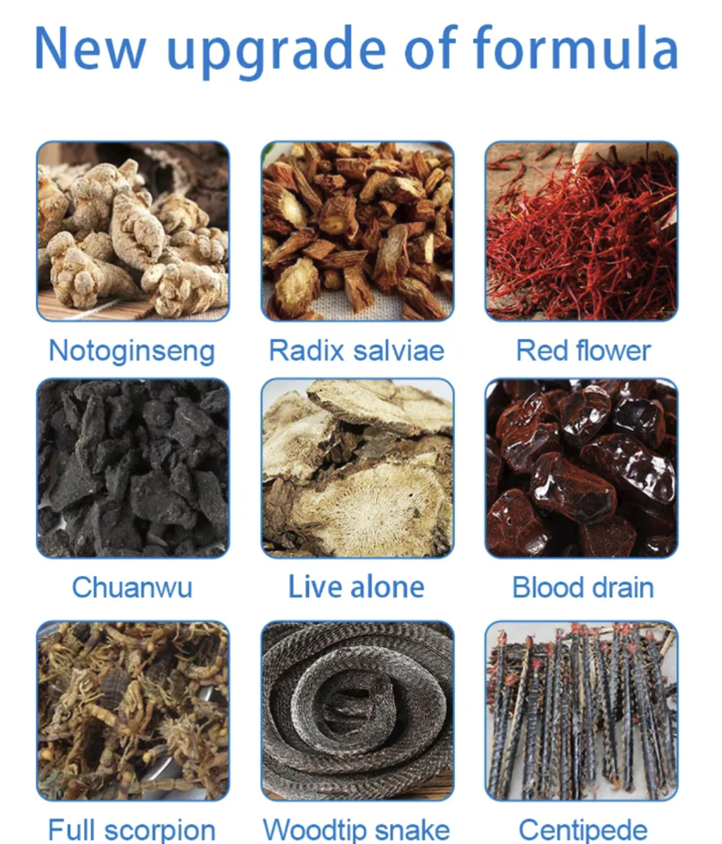 Selected are three kinds of natural herbs such as Panax notoginseng, Salvia miltiorrhiza, and Safflower, and also incorporate pain-relieving strong ingredients like Achyranthes bidentata, Duhuo, etc., supplemented by insect-based herbs such as Centipede, Ussuri Snake, and Centipede to enhance efficacy. Through scientific formulation and concentration extraction, the traditional Chinese medicine pain-relieving wisdom is integrated into the patching technology. The herbal components penetrate the skin layers and can quickly relieve muscle stiffness and joint pain, making it a "pain soothing expert" for the body. At the same time, it is combined with mild ingredients such as ginger, mint, and mugwort, with quick effect and no irritation, and sensitive skin can also use it with peace of mind.