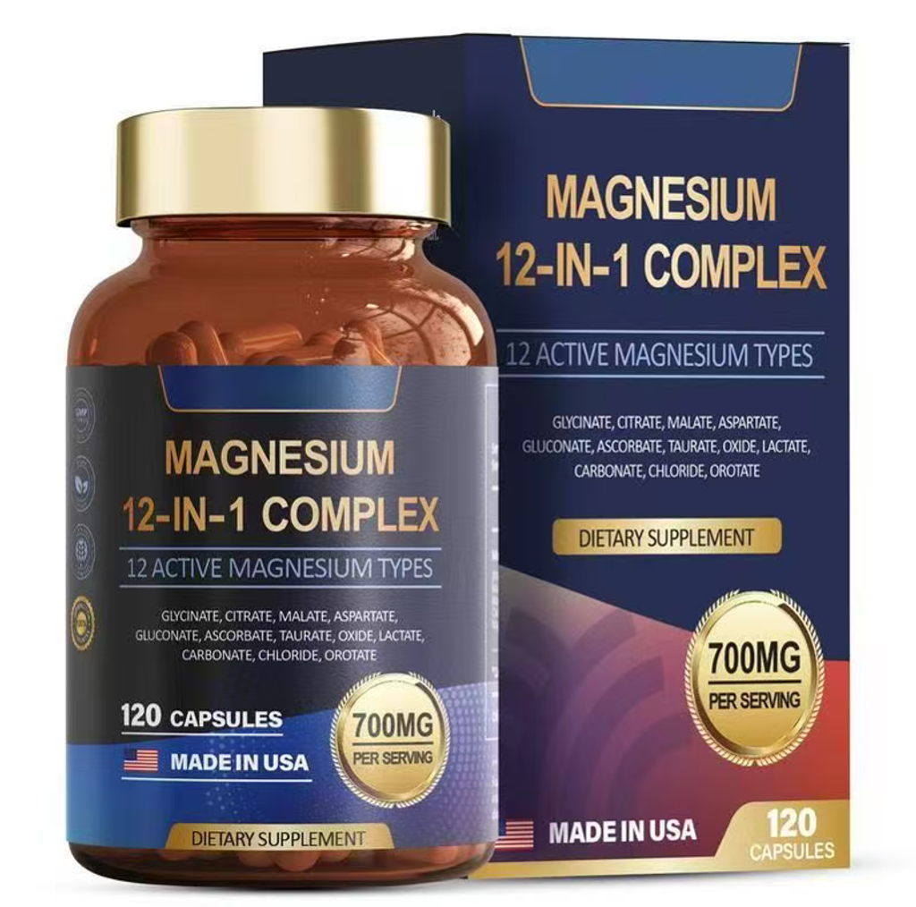 12-in-1 Compound Magnesium: 12 active magnesium components + 700 milligrams of high concentration, take one capsule daily. It helps improve sleep, boost energy, and relieve muscle tension. Place your order today, and we will send you a total of 3 bottles of 12-in-1 magnesium compound capsules to restore your body. Each bottle contains 120 capsules, totaling 360 capsules, which can be consumed for 4 months. It provides sufficient energy for your body.