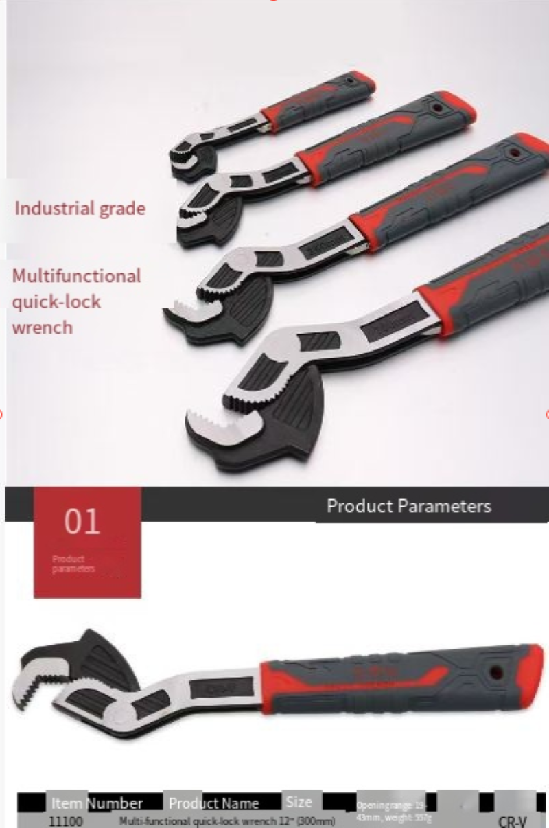 - 12-inch high-strength quick-lock industrial-grade adjustable wrench