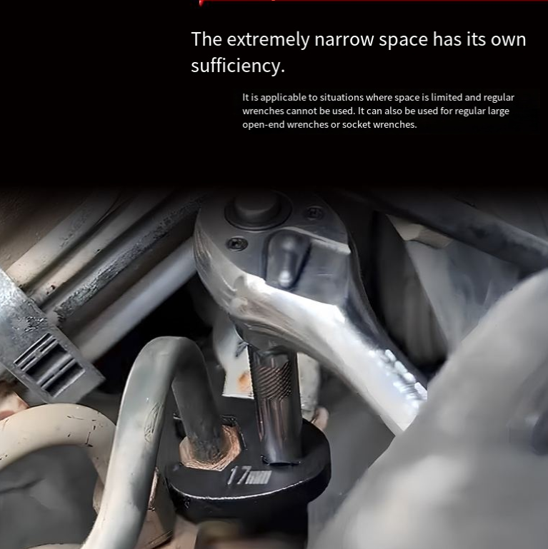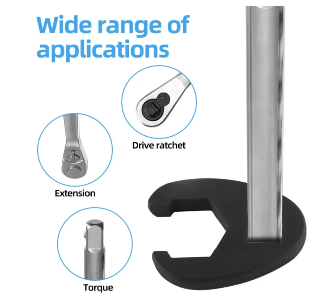 The material is high-strength engineering plastic + metal core, lightweight, durable, and insulated. It is safe even when touching wires during auto repair; the tail of the wrench can be paired with torque wrenches and extension rods for use, allowing you to easily insert it into the narrow engine compartment for operation without removing parts .