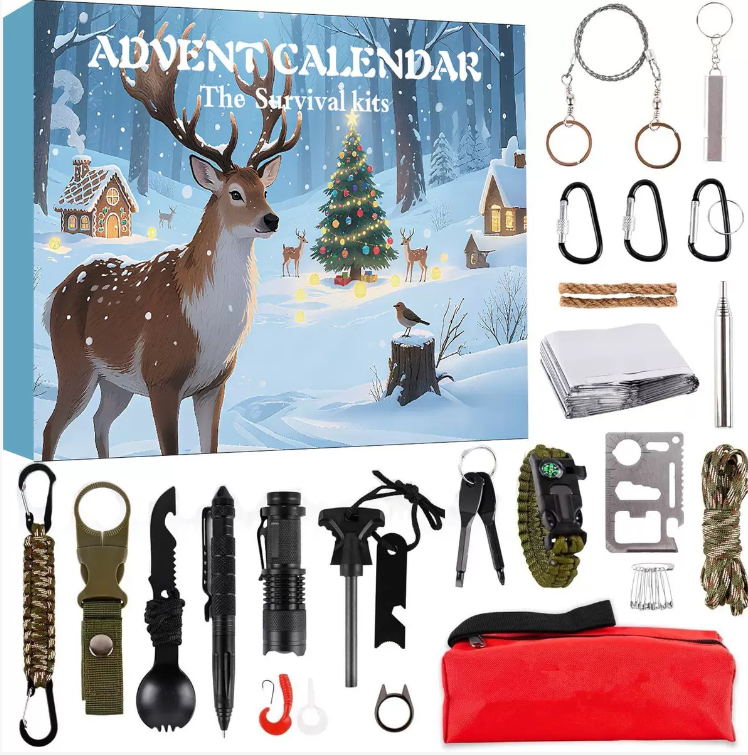 Its "blind box + survival" dual attributes are the biggest highlight: with a 24-grid design like a Christmas calendar, unlocking one grid each day will give you a practical survival tool - it could be a multi-functional tactical pen that can break windows, write, and defend; it could be a high-hardness survival knife that can easily cut ropes and wood; or it could be waterproof matches, a compass, an emergency whistle... The 24 pieces of equipment cover navigation, fire-making, water purification, tools, first aid and other core needs for outdoor survival, equivalent to compressing a professional survival equipment library into a blind box, allowing you to enjoy a wealth of surprises in the unknown.