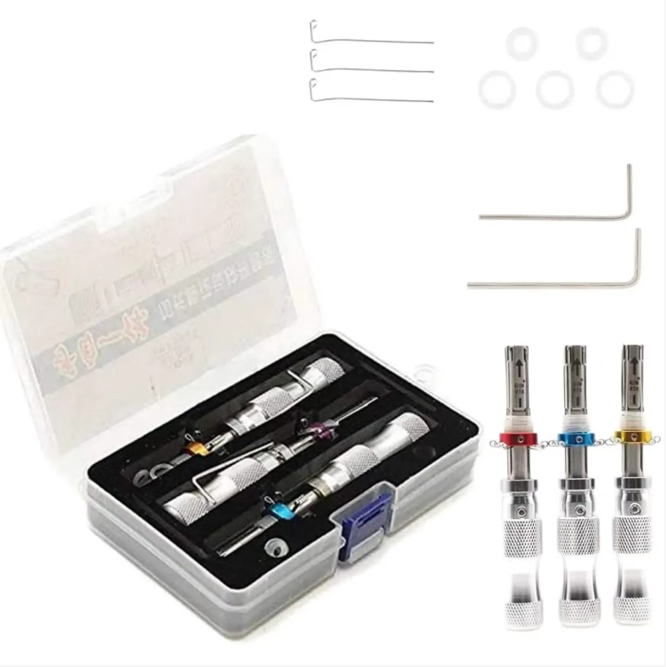 3-piece Set,Universal Lock Picking Tool, consisting of 3 sets of 7-foot tubular lock-picking tools. Made of sturdy materials and equipped with anti-slip handles. Each set comes with blue, purple and gold rings, suitable for various lock-picking needs. These professional tools help locksmiths work efficiently and provide reliable support for lock repair and lock-picking scenarios. It is a practical equipment for locksmiths and related professionals.