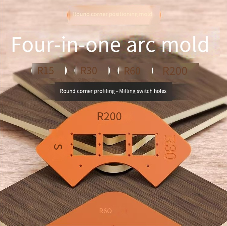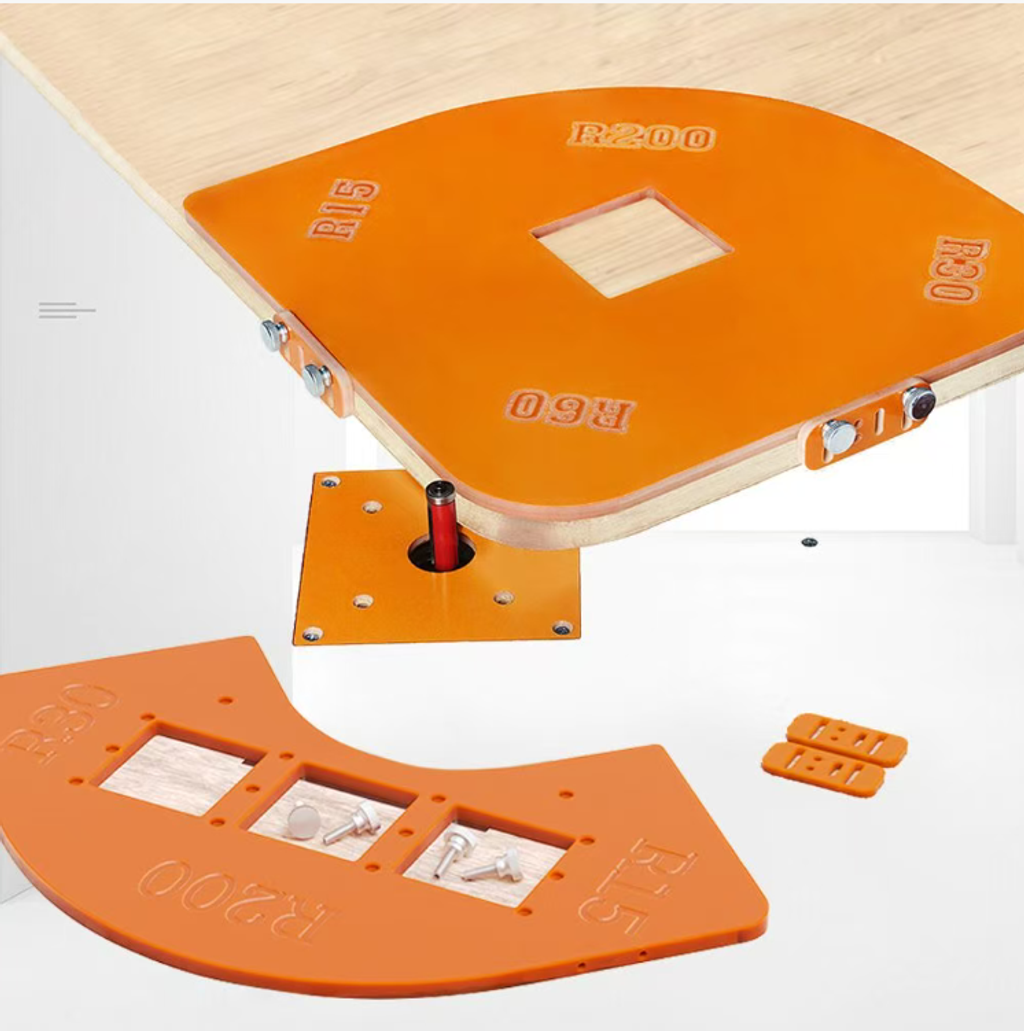When making a DIY desk, the rounded corners are cut crookedly, the openings for switches are installed wrongly and cannot be installed properly, and the large rounded corners on the tabletop are always off-center when hand-drawn by the artisan - these "details ruining the appearance quality" problems can all be solved with this arc template: without having to buy a bunch of individual-sized templates, without having to draw circles by hand, just place and fix the template on the material and let the milling machine do the work. The rounded corners it cuts out are smooth and straight, like those produced by a factory; the switch openings are precisely aligned and can be directly inserted into the sockets.