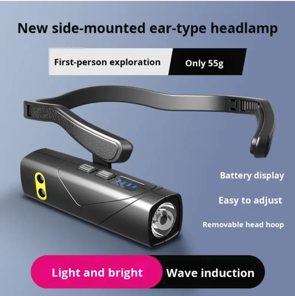 No longer be burdened by the cumbersome headlamp, no need to free your hands to touch the switch - this ear-mounted sensor headlamp is light as a feather, bright enough, can be used with a wave of your hand, handles all night use scenarios, easy and handy.