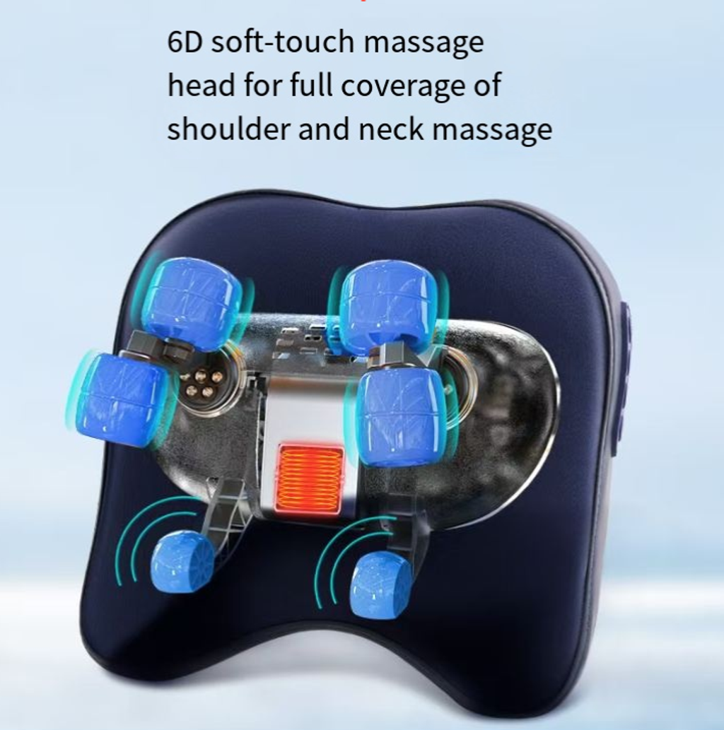 It understands the pain points of those who sit for long periods: The upgraded reverse support design doesn't press on your neck like the old neck pillow, but securely supports your shoulders and neck, simultaneously stretching the trapezius muscle. Even when lying down to massage, it's completely stress-free. The 6D soft-touch massage heads can fit your shoulders and neck from multiple angles, imitating the "rubbing + squeezing" of human hands, precisely grasping the stiff trapezius muscle, making it 10 times more comfortable than random massaging.