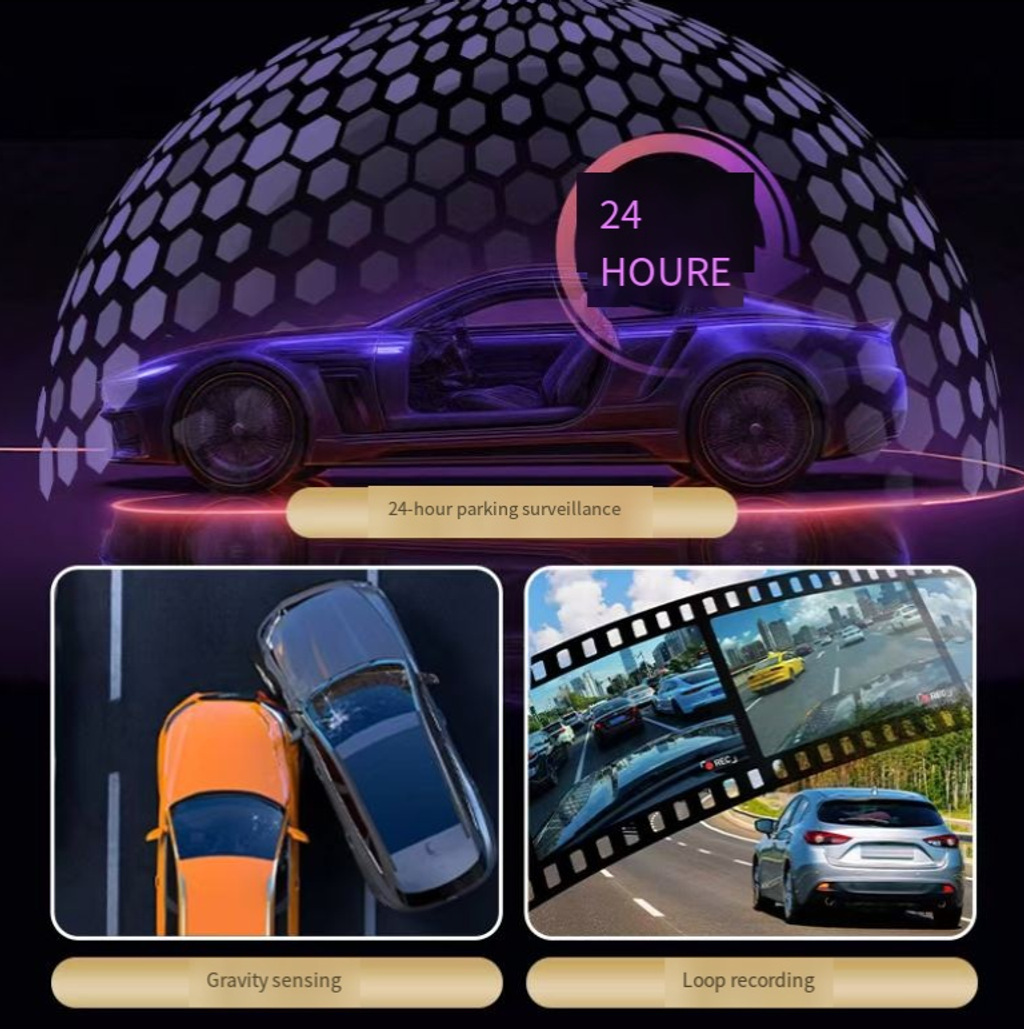 A 24-hour video recording device that can be zoomed in, with Ultra HD 1080P high-definition recording and six sets of glass lenses for capturing details. It supports parking zoom-in monitoring and WiFi mobile connection. It records continuously without occupying memory, making it a comprehensive security manager for vehicle evidence collection and parking security.
