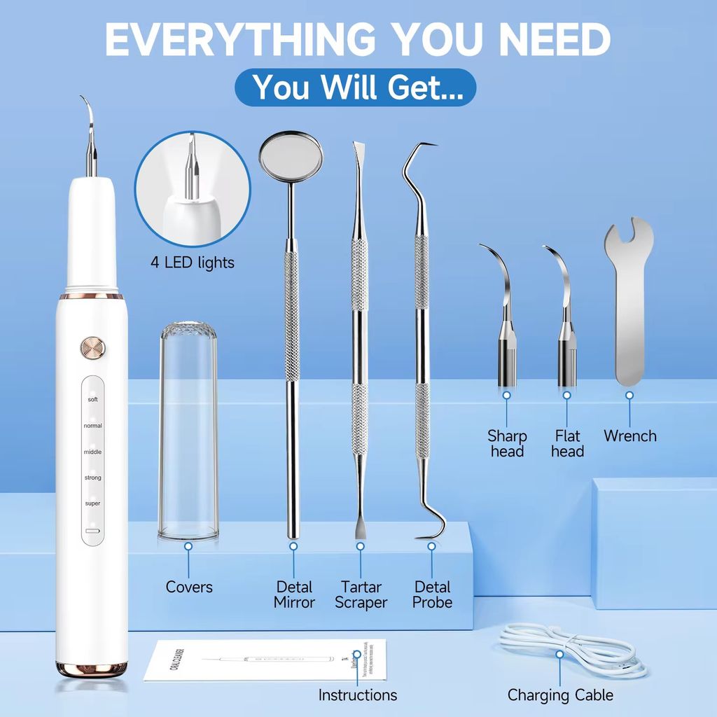 Still troubled by tooth calculus and yellow teeth from smoking? Queuing up for regular teeth cleaning is costly, and brushing your teeth daily just can't clean the hidden corners between teeth? The CURVY MOON moon-shaped device with 300W high-power ultrasonic tooth cleaning technology brings professional dental care right to your home! With 300W powerful ultrasonic vibration and 5 levels of intensity adjustment, it can switch from gentle cleaning to deep stain removal at will. Even beginners can easily handle it.