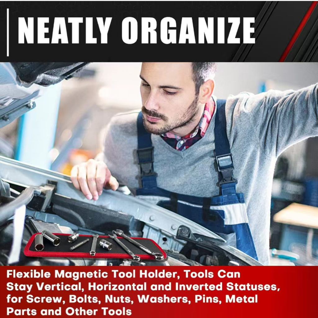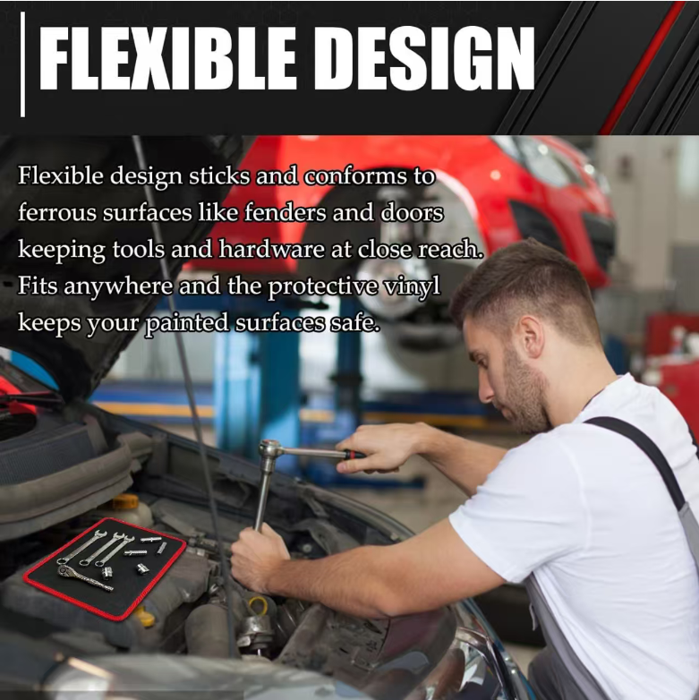The long pad (12.8×4.1 inches) can be placed in a narrow space (such as the engine compartment of a car), temporarily storing the disassembled parts;