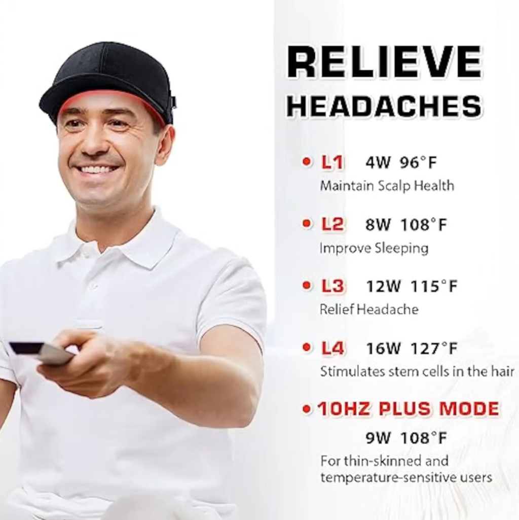 Comfortable without pressing the head: Transparent soft inner lining, red light directly reaches the scalp without obstruction, wearing the cap experience is light and breathable, and it is not stuffy after wearing for a long time;