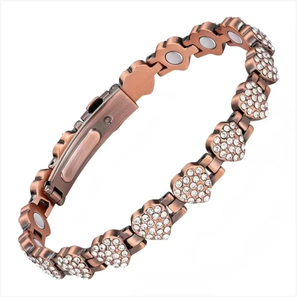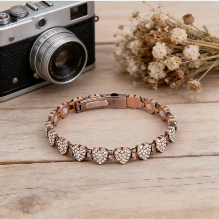 - Retro red copper magnetic therapy heart-shaped diamond bracelet
