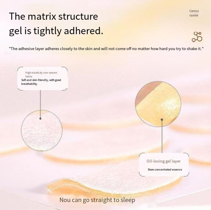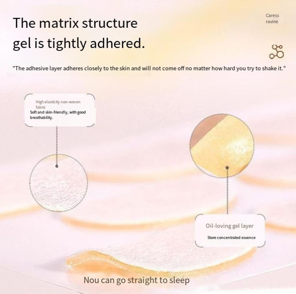 It's no ordinary eye mask! It comes with a "black technology matrix gel preservation layer": The outer layer is a highly elastic non-woven fabric, soft and comfortable, and doesn't clog the skin; the middle layer, the "oil-loving gel layer", is like a "nutrient storage tank", firmly locking in ingredients such as hyaluronic acid sodium; the most amazing part is the bio-water gel adhesive layer, which sticks to the skin and "won't come off even if you shake it", remaining stable even when turning over or sleeping on your side. Sleeping with it on is completely stress-free.