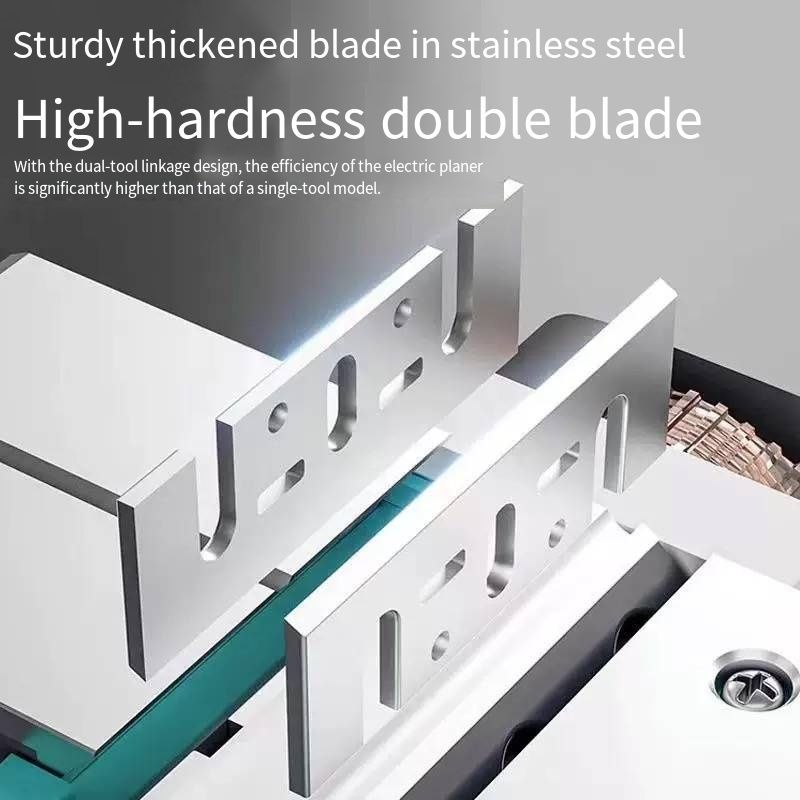 The blades are made of thickened stainless steel with high hardness and dual blades. The dual-tool linkage design enables the planing efficiency to far exceed that of single-blade models. Whether it's mass-producing wooden furniture or finely carving wood, it can present smooth and delicate processing effects thanks to the thick base plate and powerful engine.