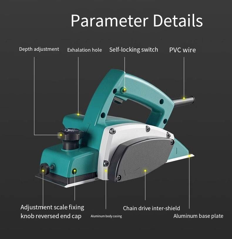 In terms of the core components, the blades are made of sturdy and thickened stainless steel, featuring a high-hardness double-blade design. With the dual-tool linkage design, the working efficiency of this electric planer is significantly higher than that of single-blade models. In woodworking operations, it can complete the planing task more efficiently, saving a lot of time and effort for woodworkers.