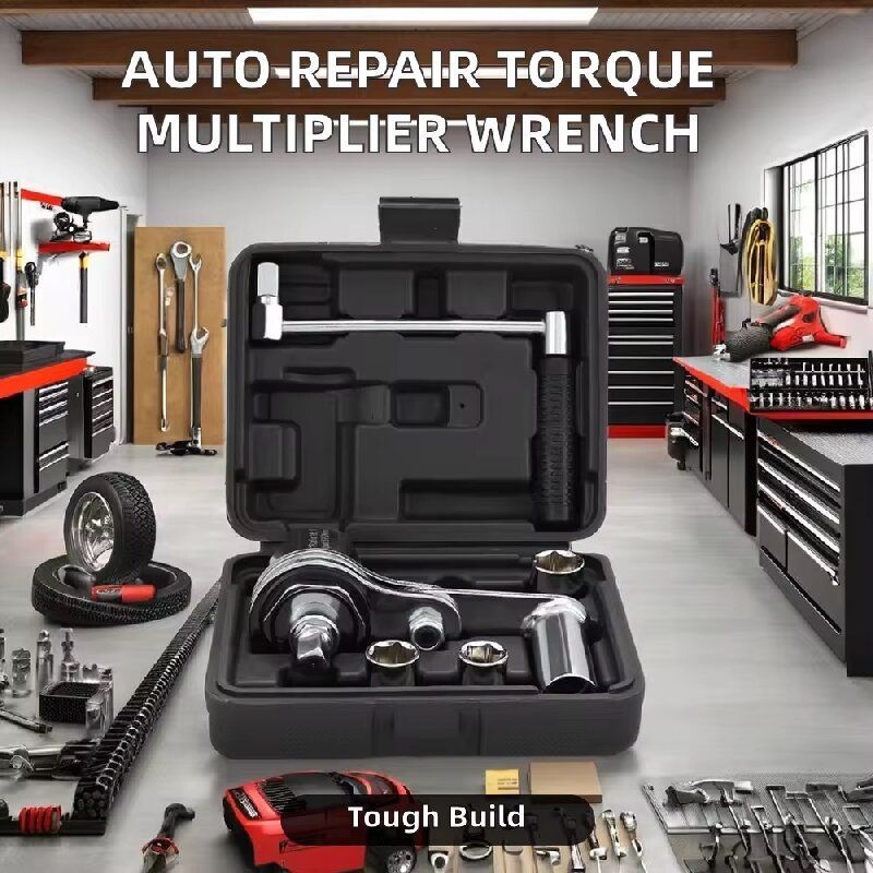 Automobile torque multiplier wrench, with multiple-sized sockets. The torque multiplier design is effortless and efficient, and the handle can be used independently. Made of high-quality materials, it is durable and reliable. The storage box is portable and suitable for large torque disassembly and assembly scenarios such as car tires and chassis. It is an efficient and professional torque solution for auto repair.