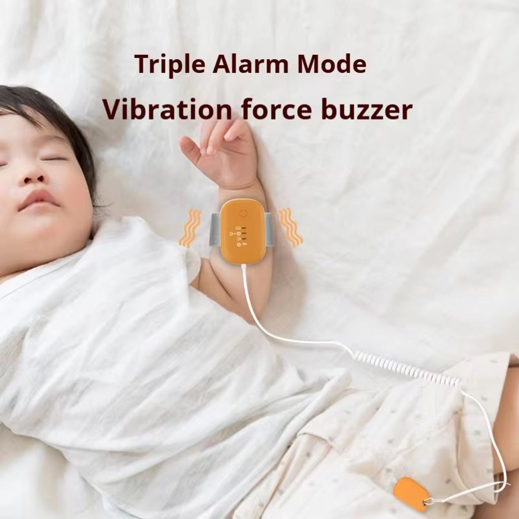Its core advantages directly address the pain points of parenting: The highly sensitive wetness sensor can accurately sense when the baby urinates and trigger a triple alarm mode - vibration + buzzing + light reminder. Whether the parents are in light sleep or the baby is in a deep sleep, they can know immediately and replace the diaper in time, reducing the problems of red bottom and eczema caused by urine stimulation from the root, and keeping the baby's delicate skin dry and comfortable at all times.