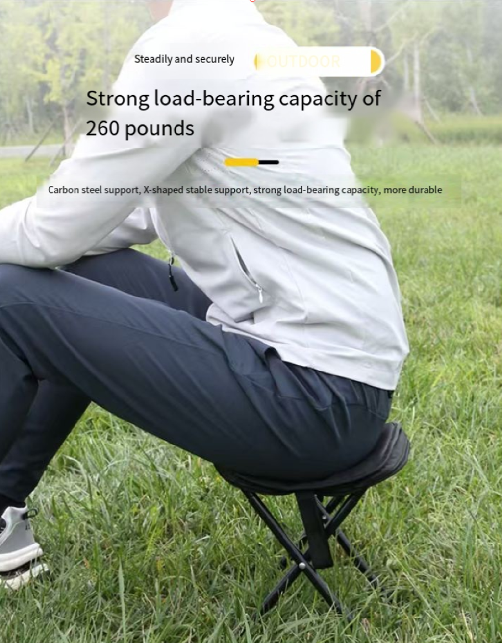 The portability is top-notch, and when folded, it has the same size as an ordinary pen bag. The strap design frees your hands, and you can carry it wherever you go without any stress. The load-bearing capacity is not compromised at all. The stable structure can easily support adults. The Oxford fabric is durable and comfortable, and the sitting experience far exceeds expectations.