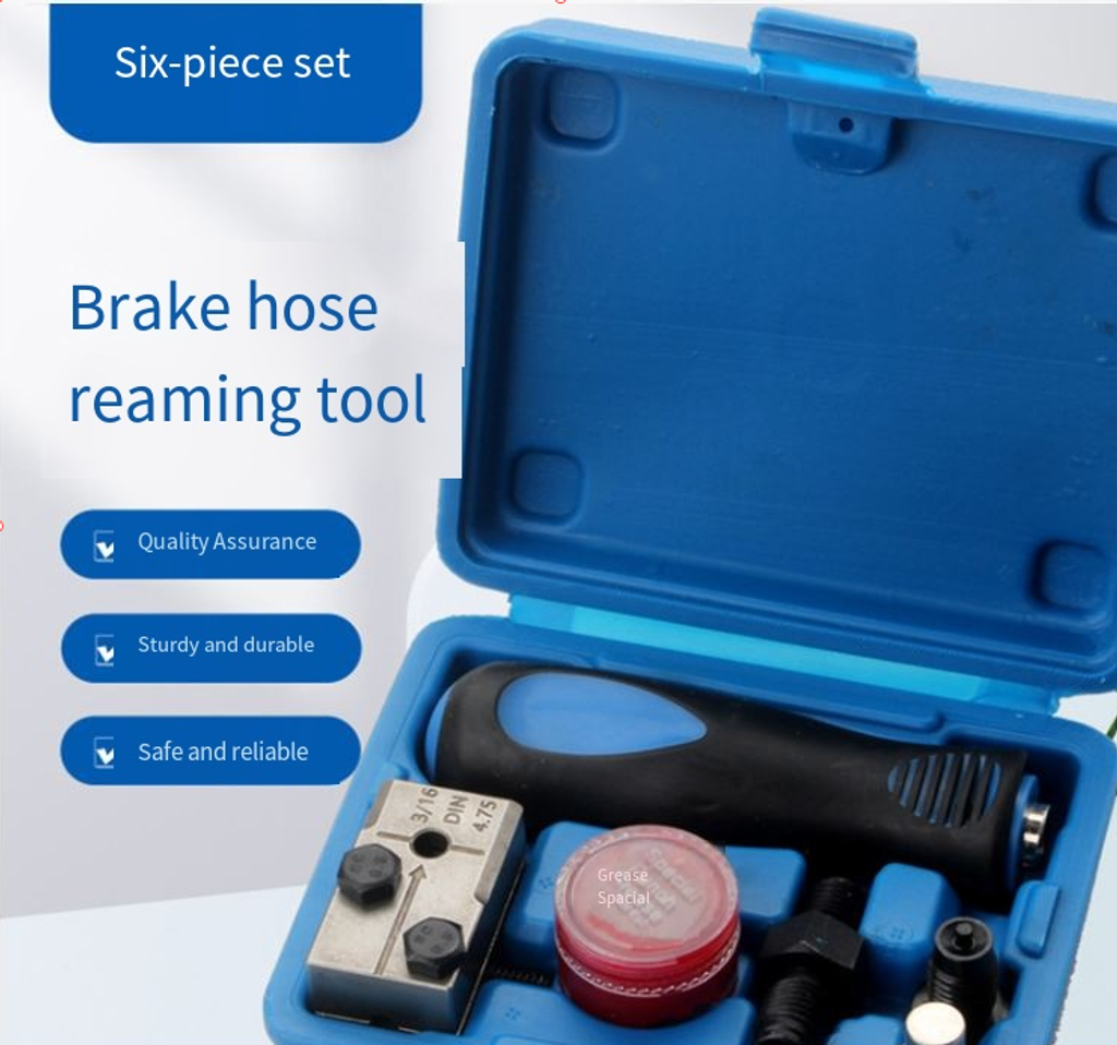 Brake pipe reaming tool kit, including reaming tools, edge trimming knives and other components. It can precisely ream the holes and remove burrs, and is suitable for various specifications of brake pipes. Made of high-strength material, it is durable. The ergonomic handle is easy to operate and it is portable and easy to store. It is a professional tool for brake repair for auto mechanics and car enthusiasts, ensuring braking safety.