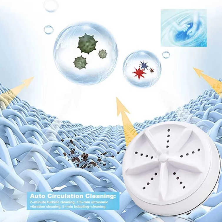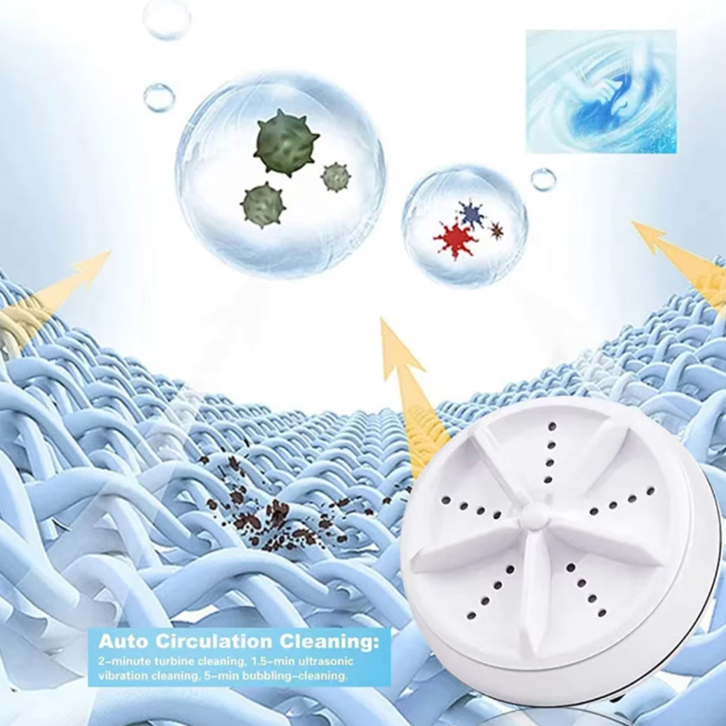 Business travelers and renters, get ready! This tiny ultrasonic mini washing machine is simply amazing: it combines turbo, ultrasonic and bubble cleaning methods for triple cleaning efficiency. It can be used for both tubs and basins. It operates quietly without disturbing others. It doesn't tangle silk during washing and prevents cross-infection when washing underwear. Just throw it in and free up your hands. Put the freedom of laundry in your pocket and quickly handle all the chores.