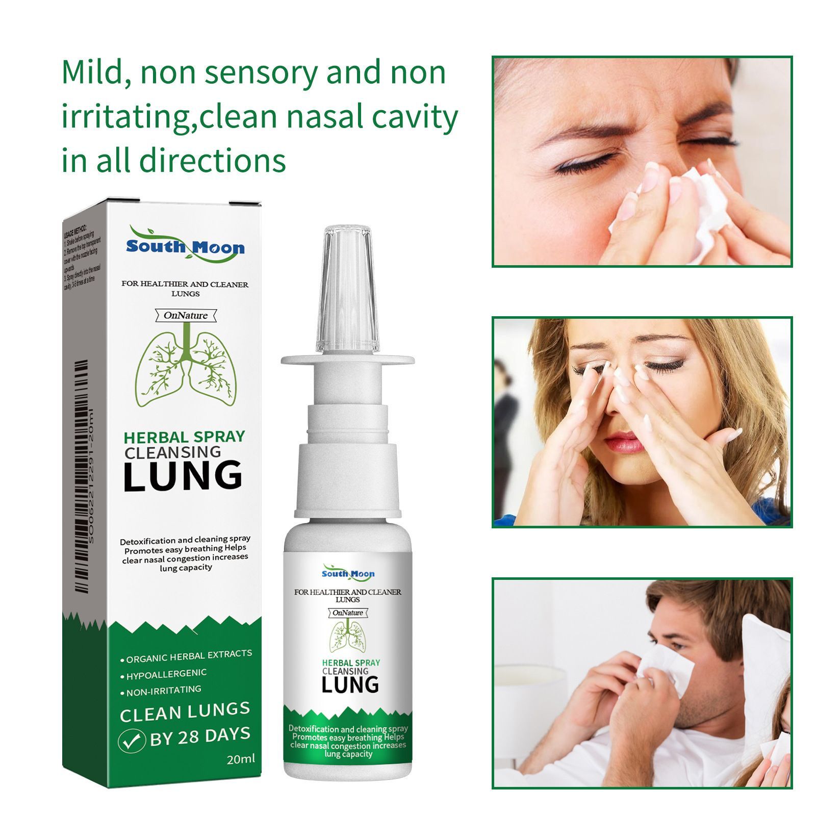 South Moon Herbal Lung-Clearing Spray: Revitalize your breathing within 28 days, say goodbye to nasal troubles. Are you still suffering from repeated problems such as nasal congestion, sneezing, and dry nasal passages? South Moon Herbal Lung-Clearing Spray, with organic plant extracts at its core, offers gentle and non-irritating dual care for the lungs and the nasal passages.