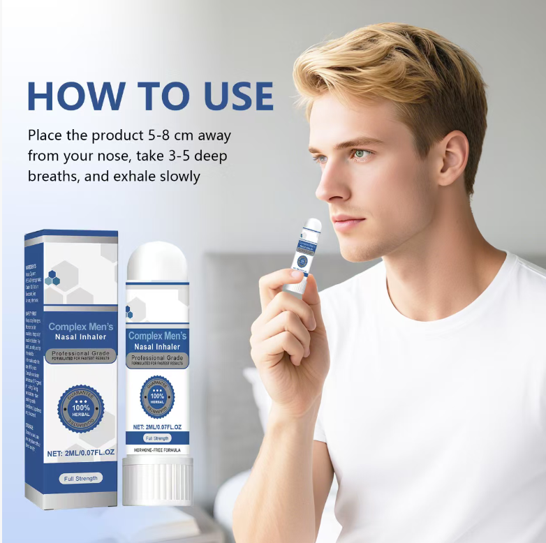 Under the fast-paced lifestyle and the pressure of multiple roles, men's health is often overlooked. Long-term exposure to high stress not only affects one's daily mental state but may also have adverse effects on important organs such as the prostate, causing problems like frequent urination, urgent urination, and prostate swelling, which in turn interfere with normal life and sleep quality. The Complex Men’s Nasal Inhaler offers a new solution for men's health.
