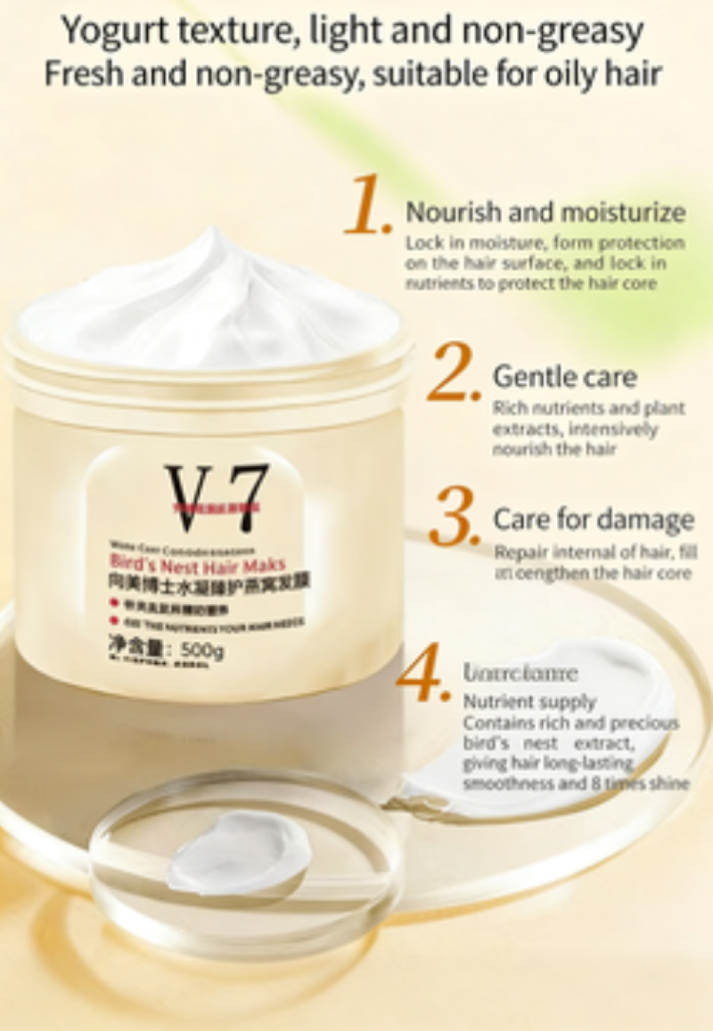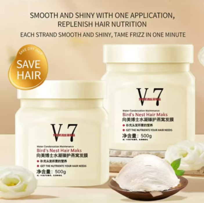 Dr. Mei's V7 Bird's Nest Mask is rich in high-concentration bird's nest essence. If you place an order today, you will receive 6 bottles of premium bird's nest salon-grade non-evaporating masks. It only takes 3 minutes to make frizzy hair smooth and repair damaged areas. Its large capacity can immediately provide protection for your hair, without the need for steam treatment, allowing your hair to have the silky shine of a salon-level treatment.