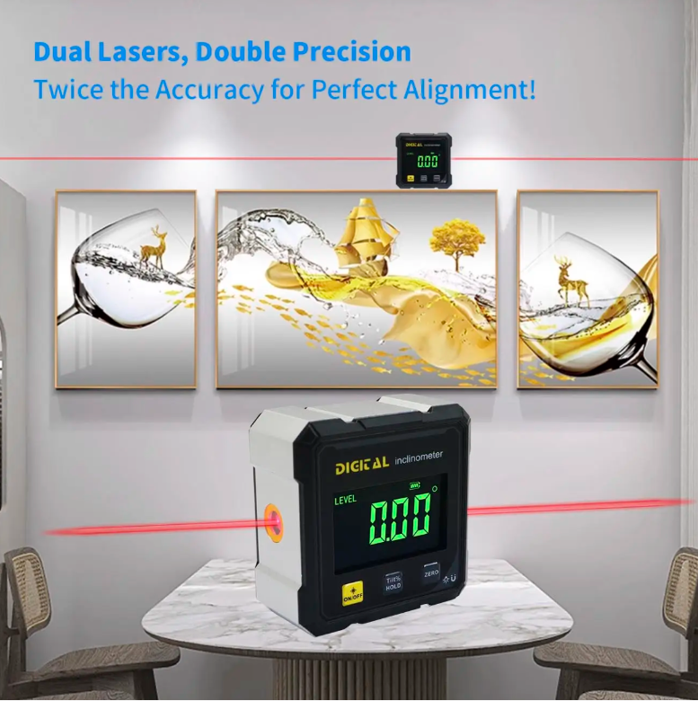 Dual Laser Measuring Instrument: Dual lasers provide double the accuracy. Equipped with clear LED display, it supports multiple unit measurements and can handle complex conditions such as humidity. It enables precise alignment in various scenarios, facilitating efficient operations in fields like construction and decoration.
