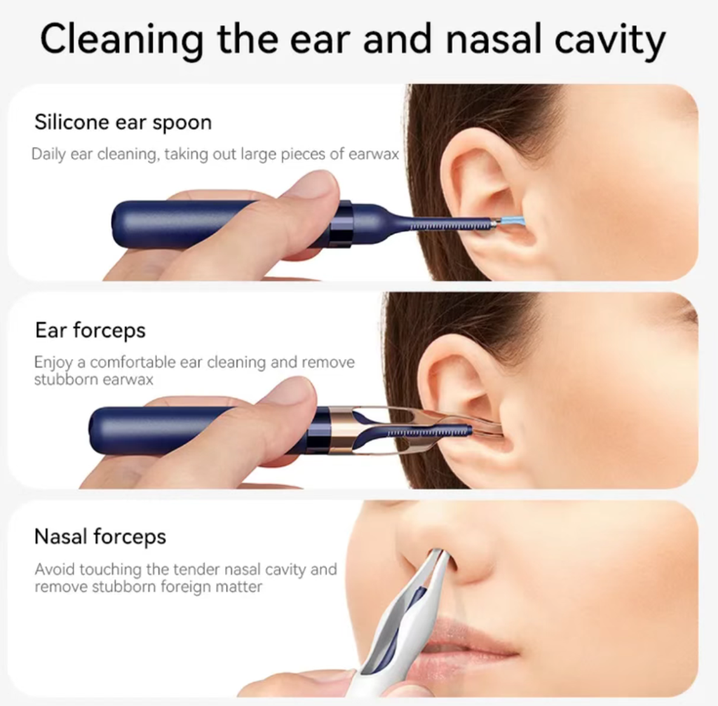 In addition to ear canal cleaning, this ear pick also has a nasal cleaning function. It is equipped with a dedicated nasal clamp and a detachable ear pick, which can easily remove dirt from the nasal cavity and make breathing more smooth. This design undoubtedly provides more convenience for users who pursue comprehensive health care.