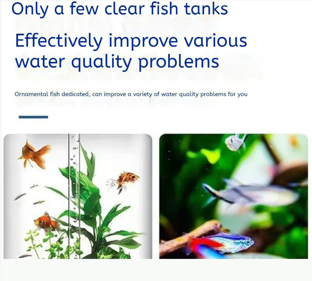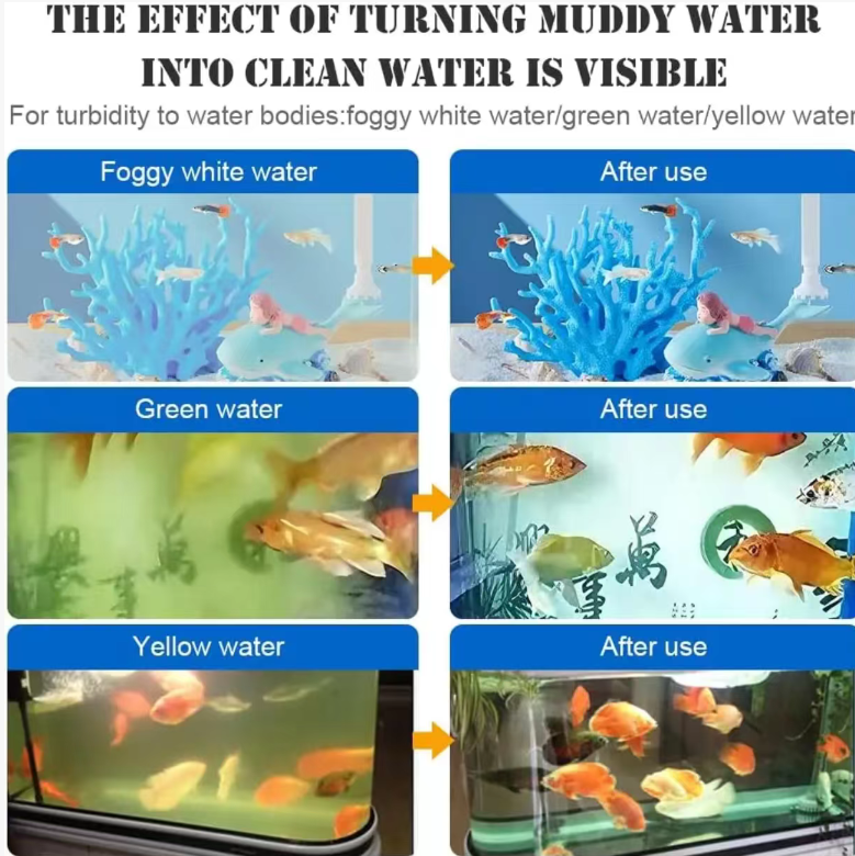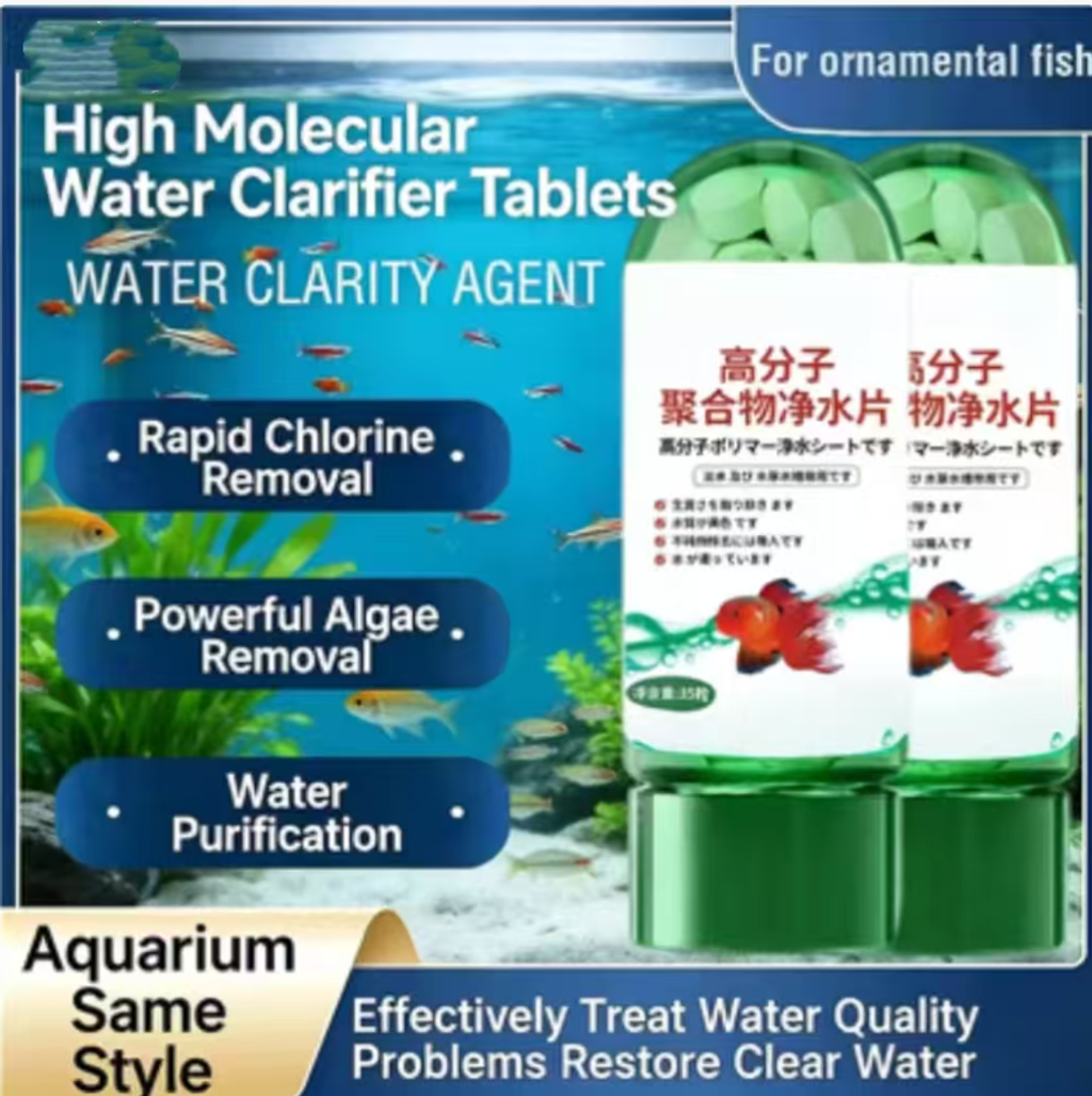 It is the "all-purpose cleaner" for fish tanks: Drop one tablet into the tank, and the polymer components will dissolve quickly, adsorbing impurities and fecal debris in the water, and decomposing chlorine and algae in the water body. There is no need to manually clean the dirty water or frequently change the water. After a short period of standing, you can see the water become clear and transparent, and the patterns of the water plants can be clearly seen.