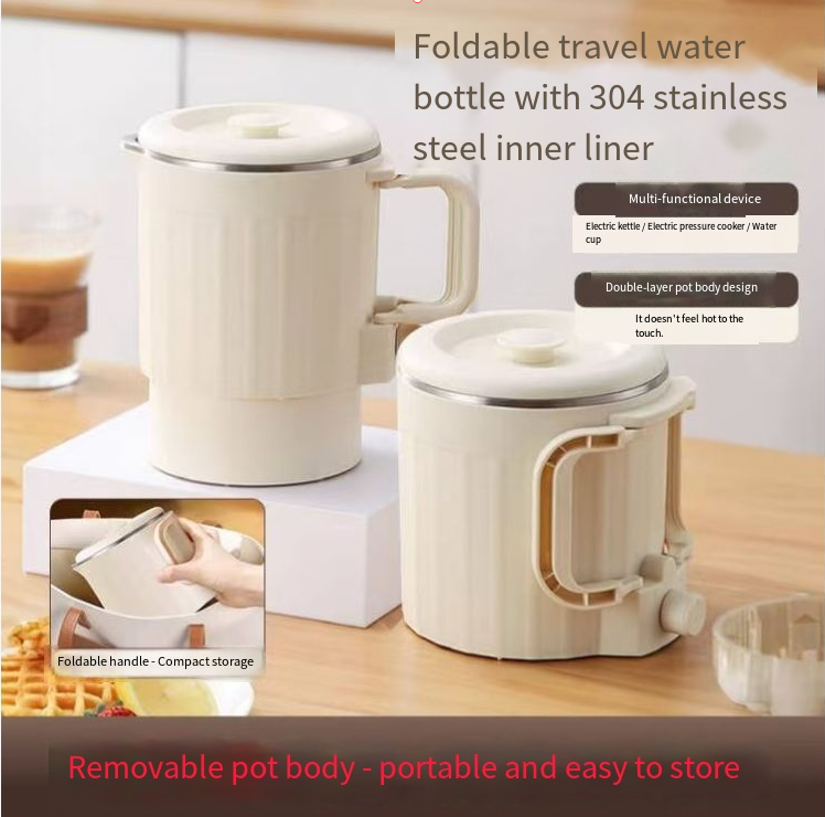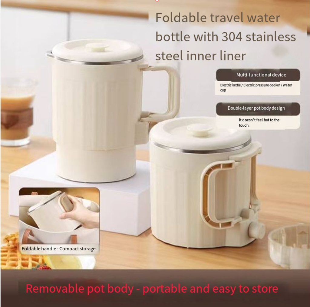 It features a 304 stainless steel inner liner, which is safe and durable, making boiling water more reassuring. With a foldable design, the kettle body can be contracted, and it can be easily stuffed into a suitcase, taking up no space and being easy to store. It can also freely switch between a pot and a kettle, serving as both a boiling kettle and a portable pot, making it super convenient to pour and drink directly. Whether you are in a hotel, homestay, or outdoor camping, it allows you to quickly enjoy pure hot water, making coffee, preparing milk powder, and brewing scented tea with just one click, bringing you full warmth and convenience during your journey~