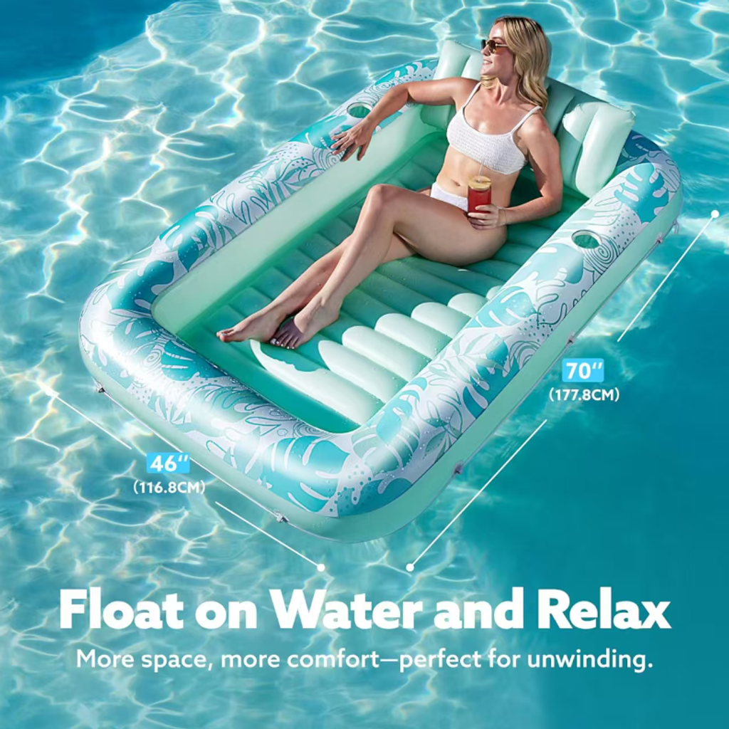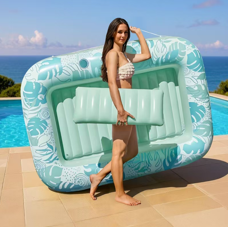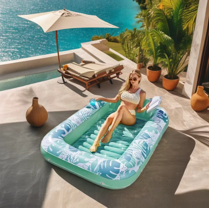 It is a "multi-scenario cooling accessory": when placed in the swimming pool, it functions as a floating bed; when lying on it, you are partially submerged in the water and won't sweat even when exposed to the sun. On the terrace / backyard, it becomes a "mini pool", where you can soak your feet in ice water and lean against it while reading or watching TV, all feeling cool. It is wide enough (70×46 inches), allowing you to either curl up or stretch your legs without feeling cramped. It comes with a cup holder that can hold ice drinks, eliminating the need to get up to reach for the cup.