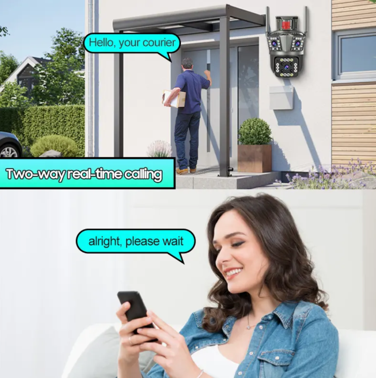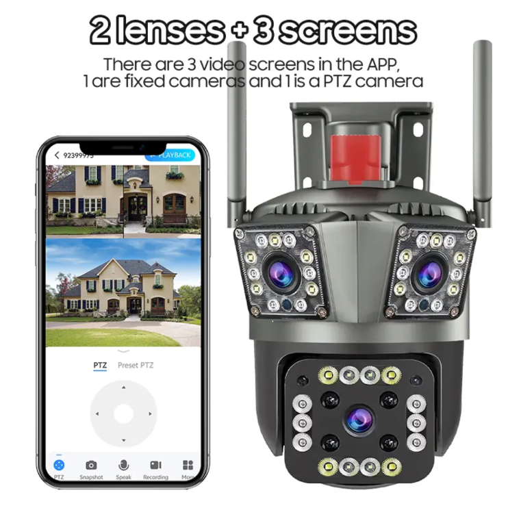 The safety of your home is the core demand of every family. When you are worried about strange noises outside the door, concerned about the elderly or children at home alone, or want to check the flowers, plants, and pets in the courtyard at any time, this three-screen high-definition night vision outdoor waterproof 360° home intelligent surveillance camera, with its all-round performance of "multi-screen monitoring + high-definition night vision + all-scenario compatibility", becomes your family's "Smart Guardian", ensuring your sense of security is always available.