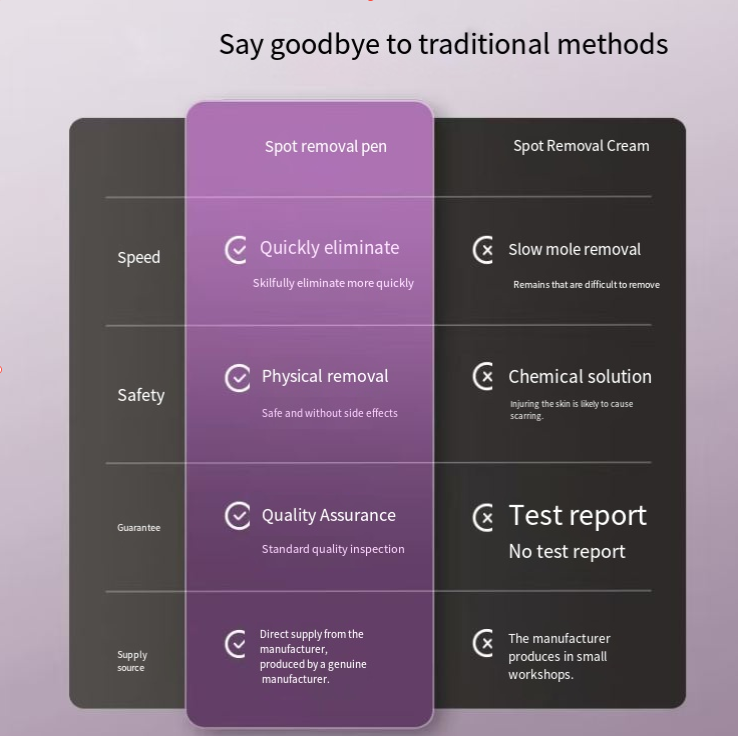 Previously, when applying the mole removal cream, either there was no effect for half a day, or the skin would turn red and leave marks after application - this mole removal pen adopts a "physically gentle approach": it precisely targets and treats the mole or wart through physical action, unlike chemical creams which can corrode the surrounding healthy skin. After use, it is combined with a repair cream to help the skin recover quickly, and there is no fear of leaving scars or marks. Even sensitive skin can use it with confidence. Compared to traditional methods, it is like "precisely removing minor blemishes from the skin", rather than "applying a layer of irritants", providing a completely reassuring feeling.