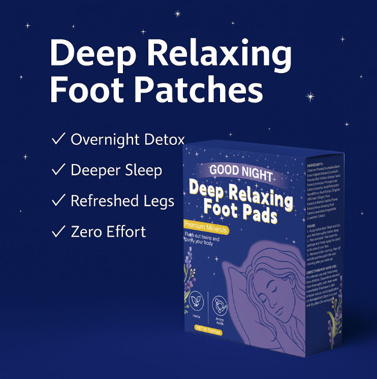 Feeling swollen in the feet after standing all day? Feeling sleepy and exhausted after 8 hours of sleep? Struggling with insomnia due to stress? This Deep Relaxing foot care detox patch combines detoxification, sleep aid, and relaxation in one patch. Apply it to your feet before bed and wake up feeling refreshed with light legs and feet, plus a deep sleep-induced relaxation.