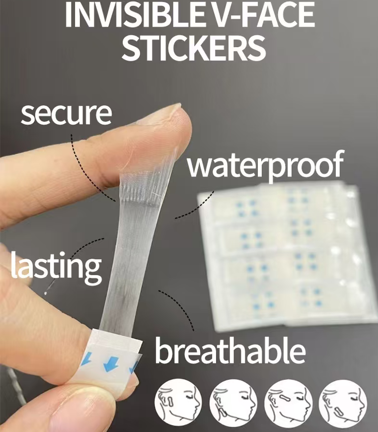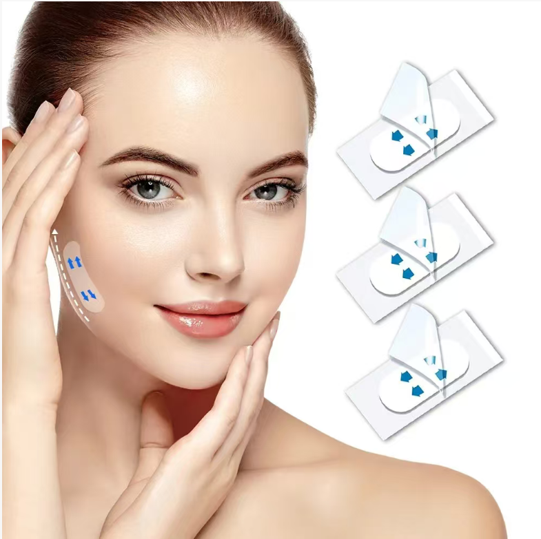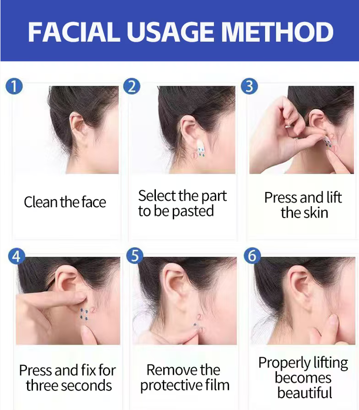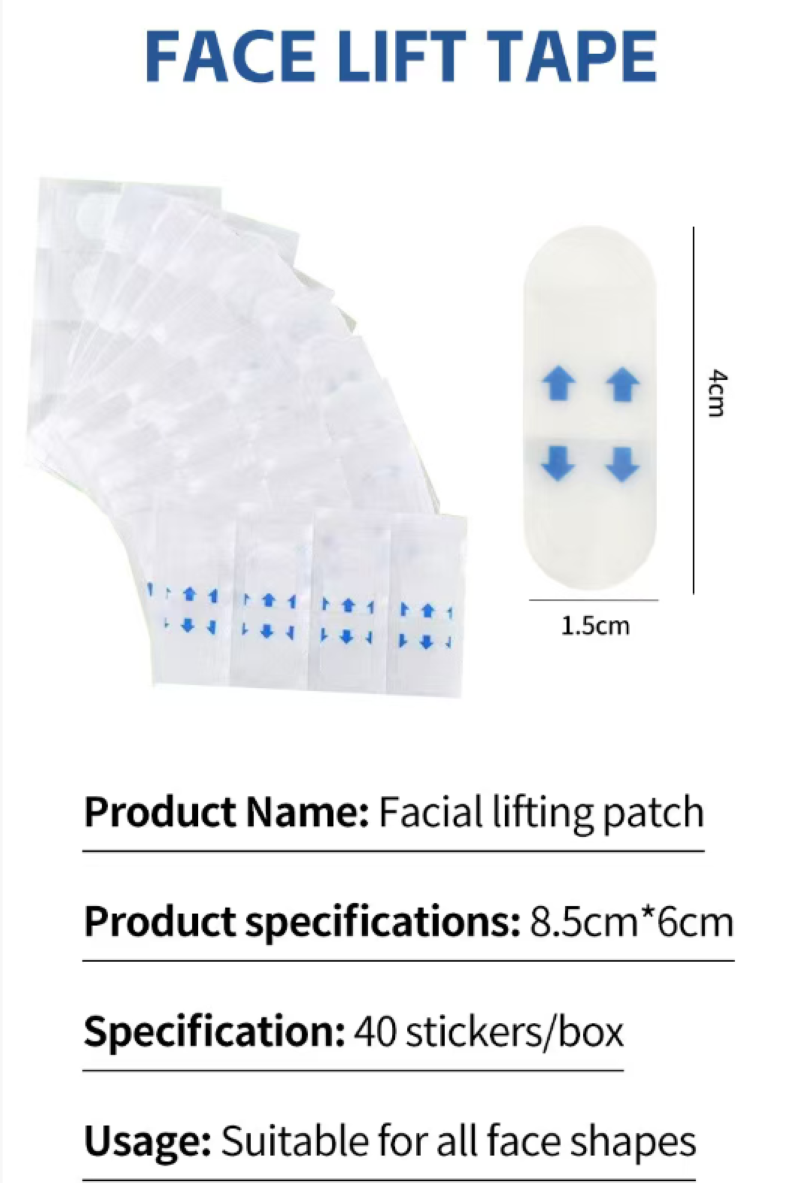 Its core feature is "invisible lifting": The ultra-thin and breathable medical-grade material is completely transparent when applied to the skin, and even when in close social contact, it won't be noticeable; adhered along the arrow direction to areas such as the ears and jaw, a gentle pull can lift the sagging skin, the apple-shaped cheekbones instantly rise, the double chin gradually tightens, the nasolabial folds are flattened, and the facial lines become neat and smooth. No longer needing to rely on photo editing software to "push the face".