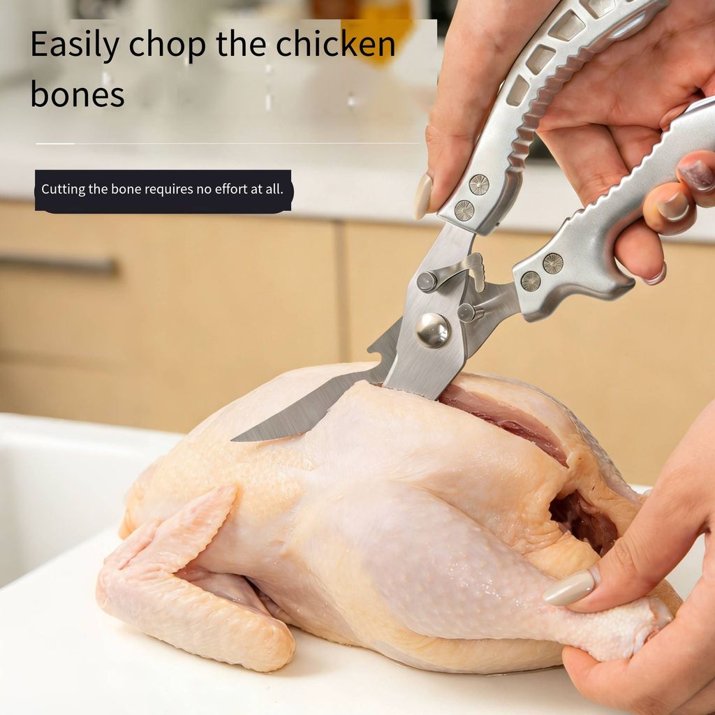 When preparing meals, do you find it troublesome to handle chicken bones and hard ingredients? Ordinary scissors either can't cut them or become blunt and rusty after a few uses? This powerful kitchen scissors is precisely designed to address these problems.