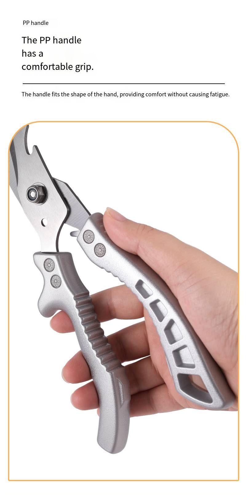 The handle part is made of anti-slip and wear-resistant materials, which fit the palm and are not prone to slipping when holding, and won't tire the hands even after long use; compared to the fragile and easily broken ordinary scissors, this powerful scissors are durable and sturdy, capable of handling all kinds of "tough jobs" in the kitchen - whether it's cutting chicken bones, slicing ingredients, or handling other hardcore kitchen tasks, it can efficiently handle them.