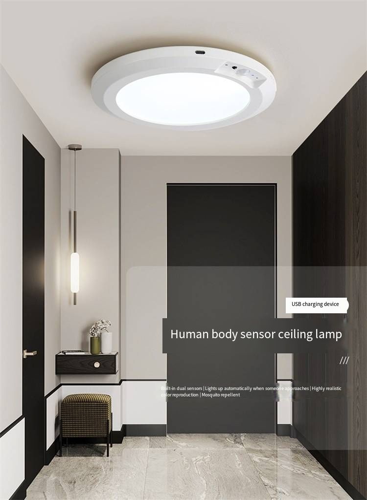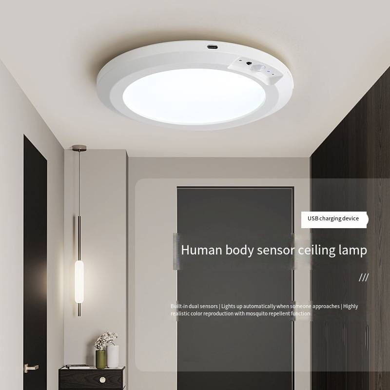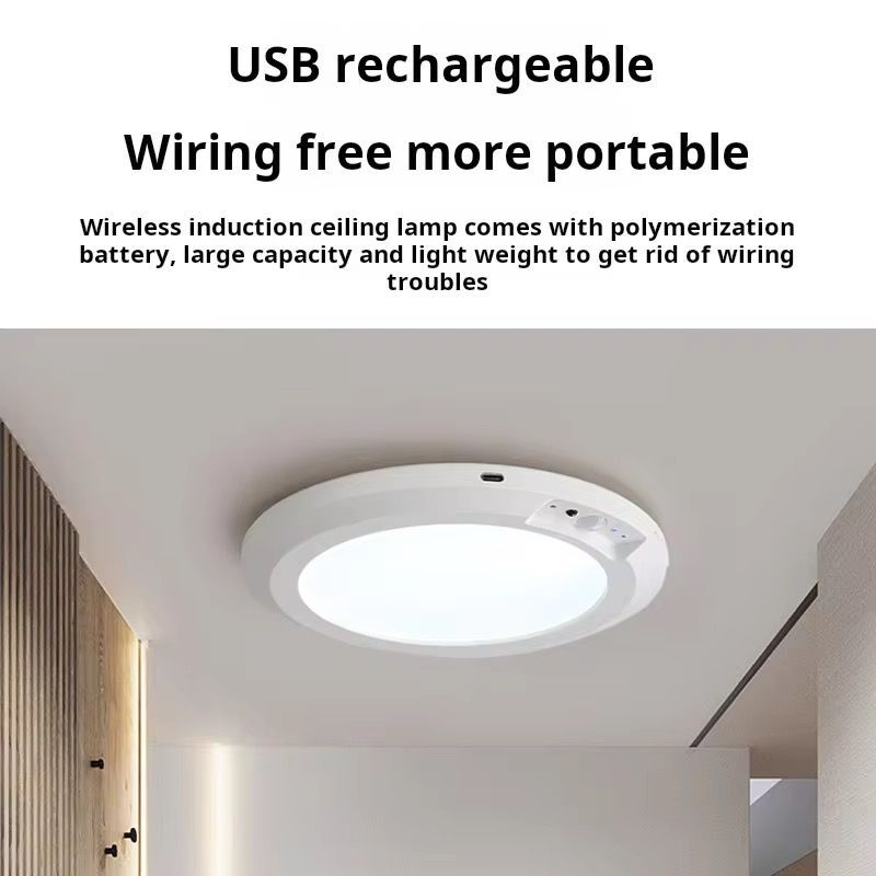 【No Wiring + Smart Sensing, Making Lighting Easier】USB Charging Human-Sensing Ceiling Lamp