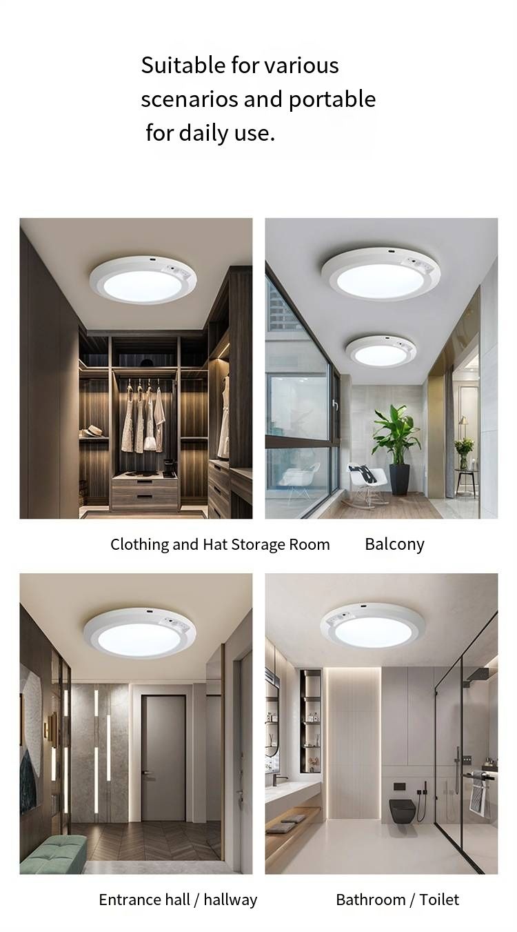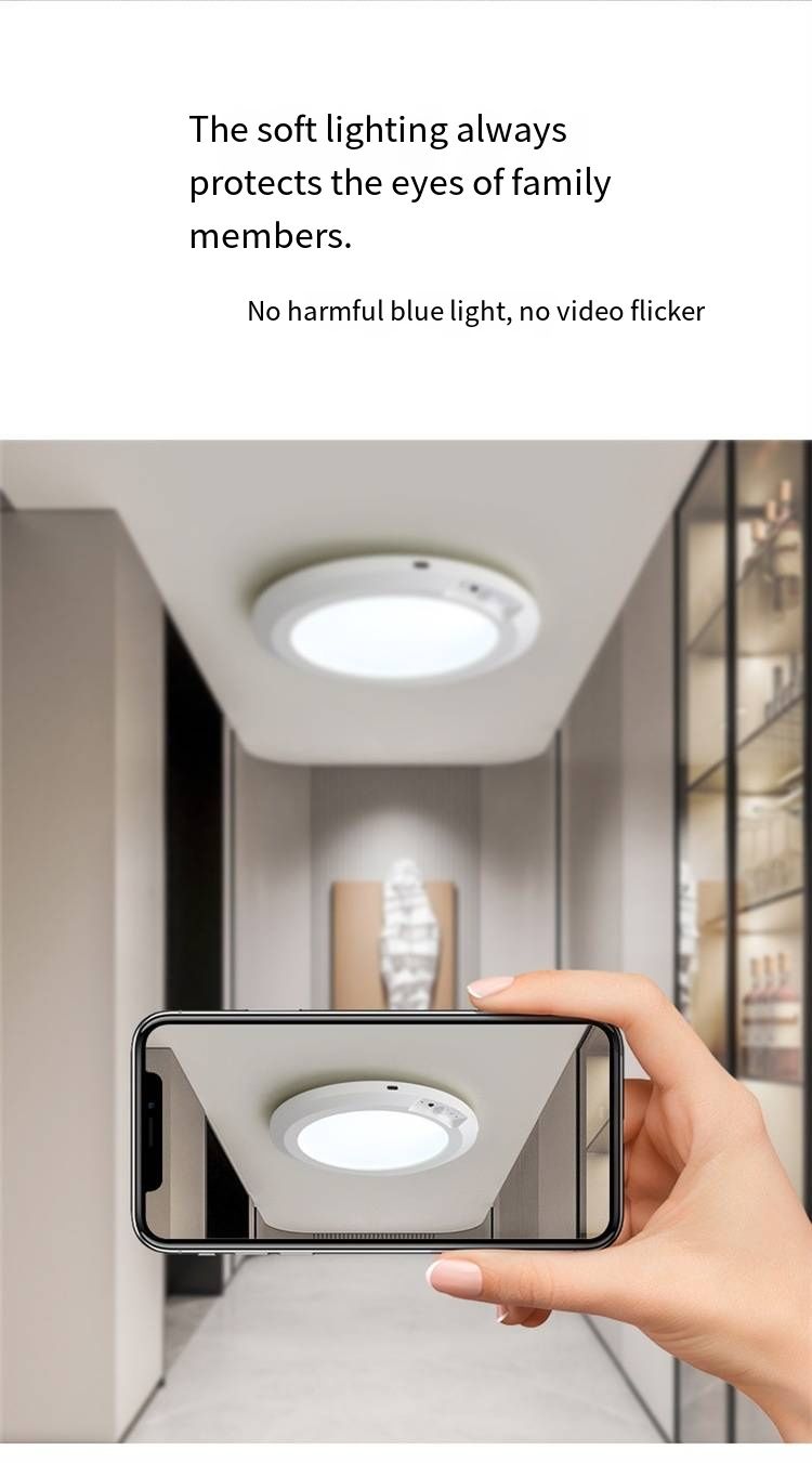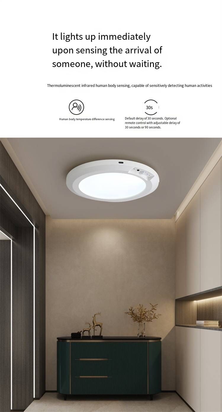 Have you ever experienced: Searching for the entrance switch in the dark after returning home, damaging the wall's appearance with wiring in the corridor, and having to pull out a power strip for temporary lighting? This human-sensing ceiling lamp eliminates all these hassles with just one click.