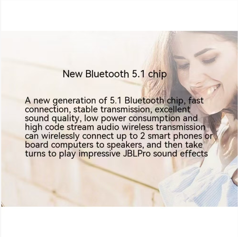 JBL Waterproof Subwoofer, the mobile live sound in your pocket, IP67 waterproof and dustproof, capable of withstanding heavy rain and sandstorms. JBL Pro Sound delivers powerful bass that resonates in your chest cavity, and it connects via Bluetooth 5.1 without lag. Fully charged, it can last for 12 hours. Light as a bottle of water, it can create a sound explosion in camping, bathrooms, or workstations - carry it with you and you're always in a livehouse!