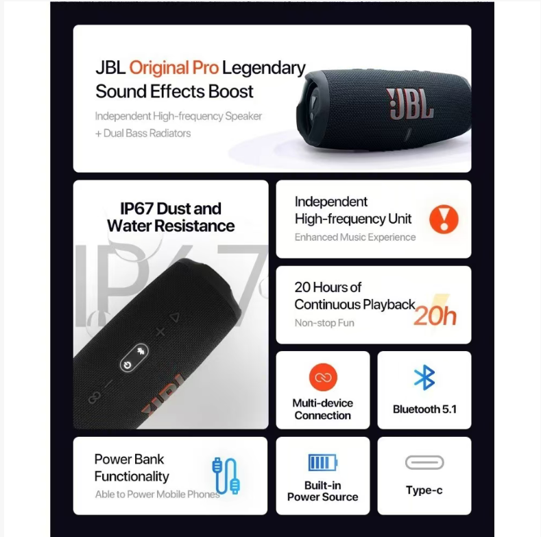 Want to immerse yourself in powerful sound effects at camping, cycling, or gatherings? This JBL Bluetooth portable speaker is the music tool that can accompany you through all kinds of scenarios.
