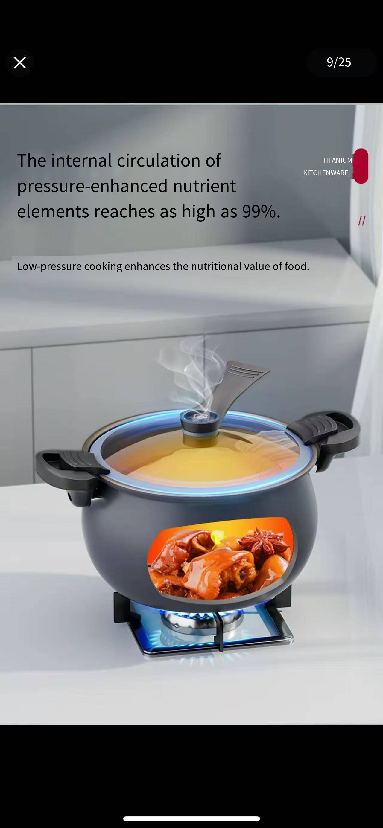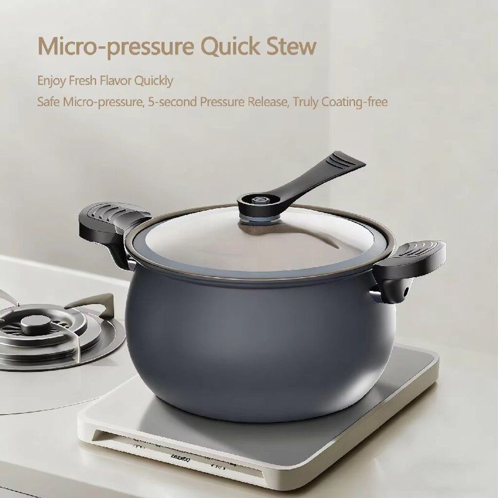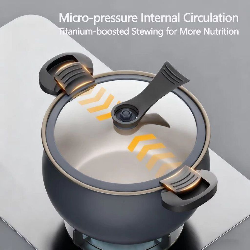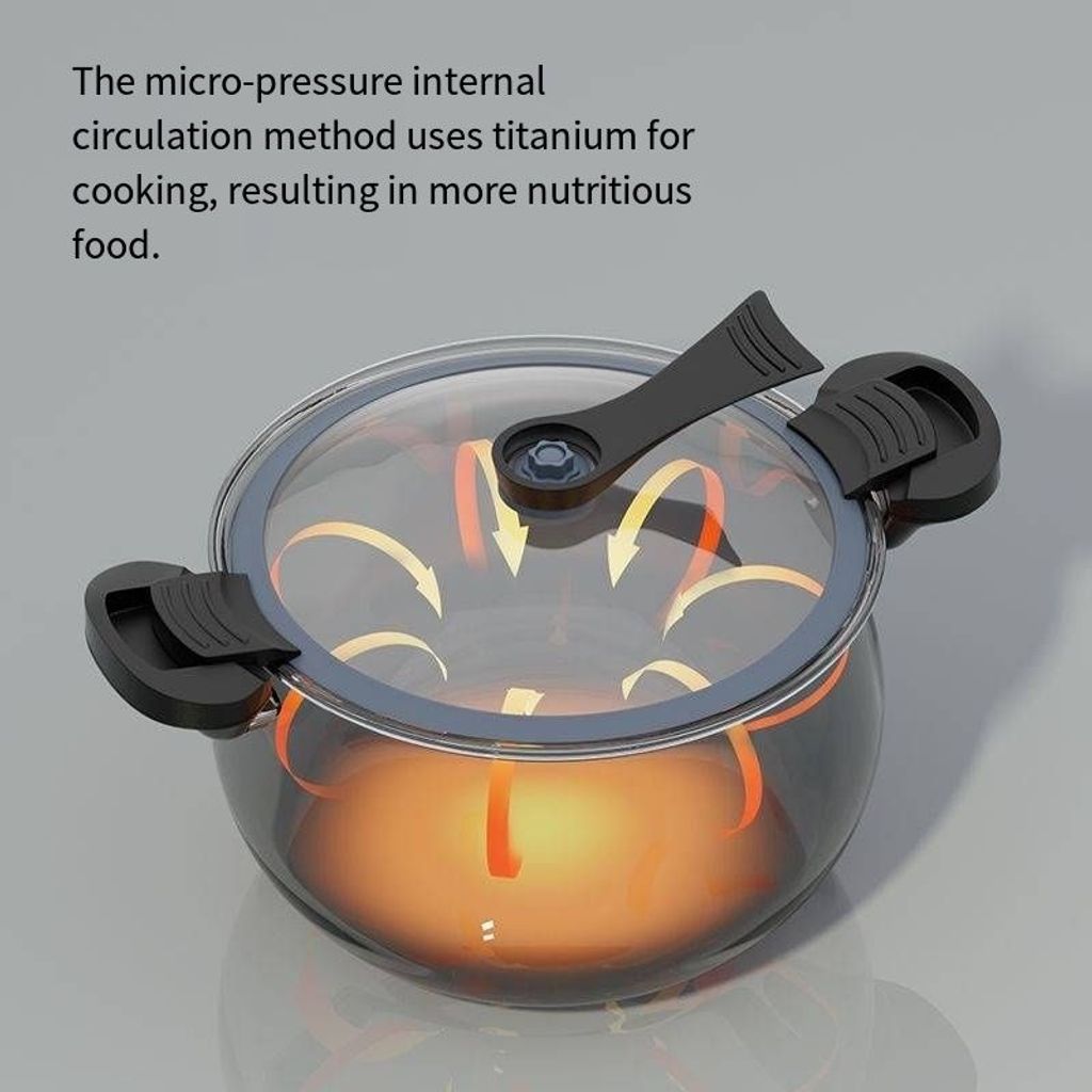 Kitchen effortless pressure quick-cooking wonder: Dual ear snap-sealed preservation structure, 5-second rapid pressure release device + uncoated titanium inner liner's micro-pressure internal circulation cooking technology. It covers various cooking scenarios such as quick-cooking and slow-cooking for family meals. It not only locks in the fresh and delicious taste and original nutrition of the ingredients, but also ensures the safety and convenience of the cooking process.