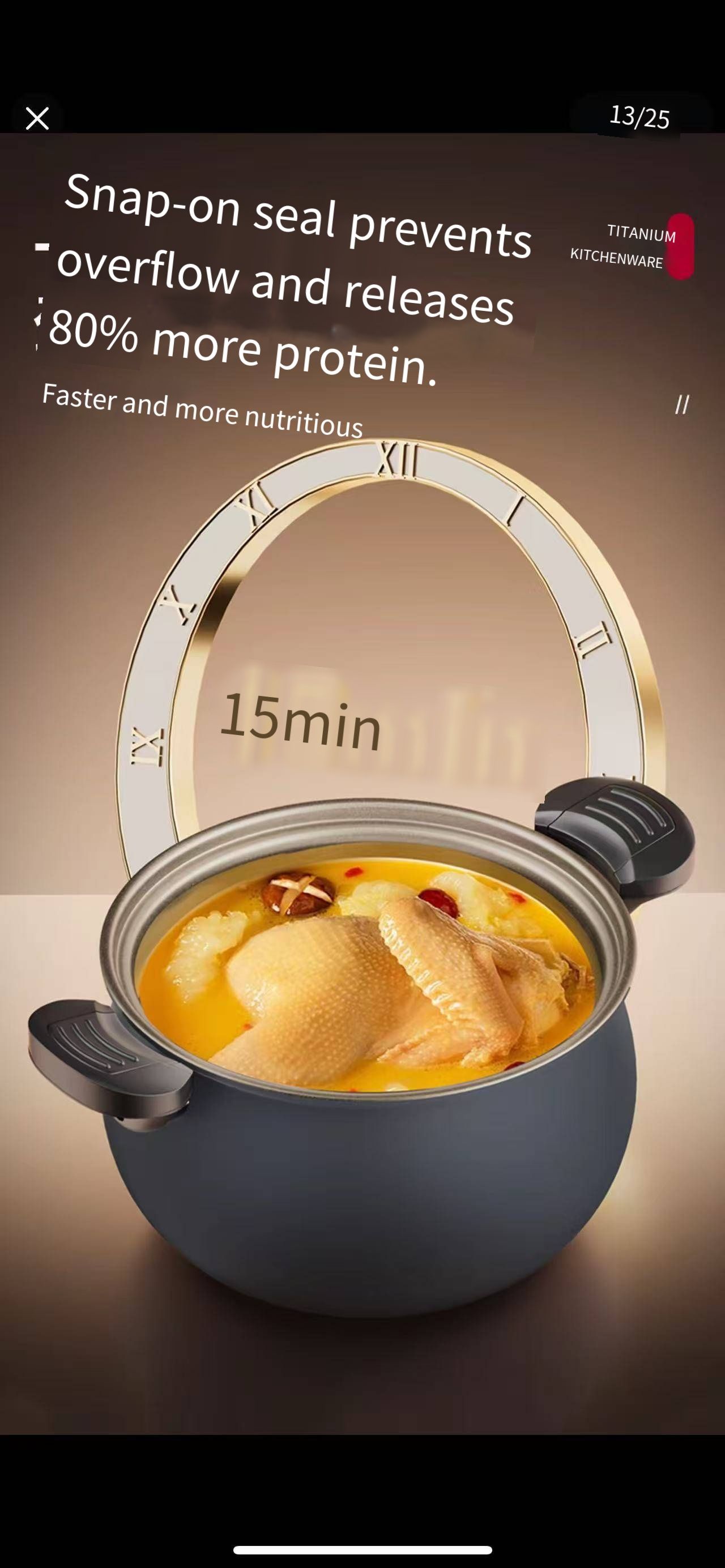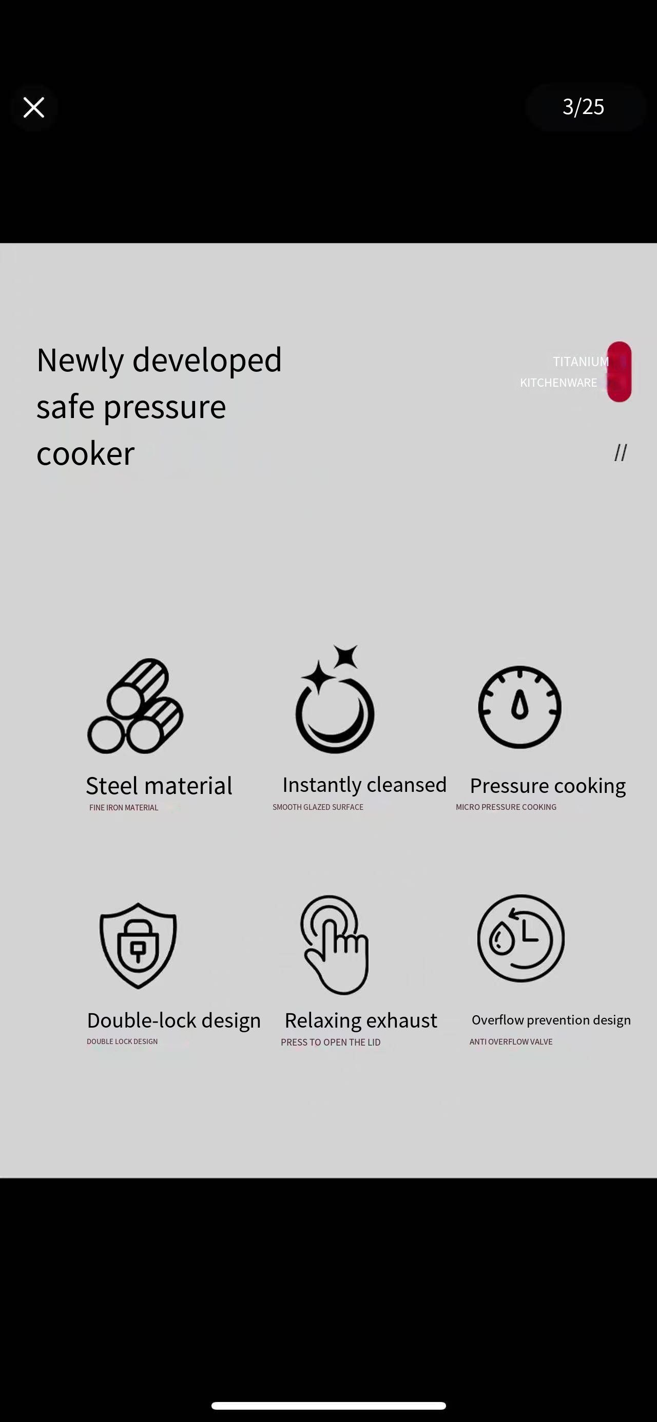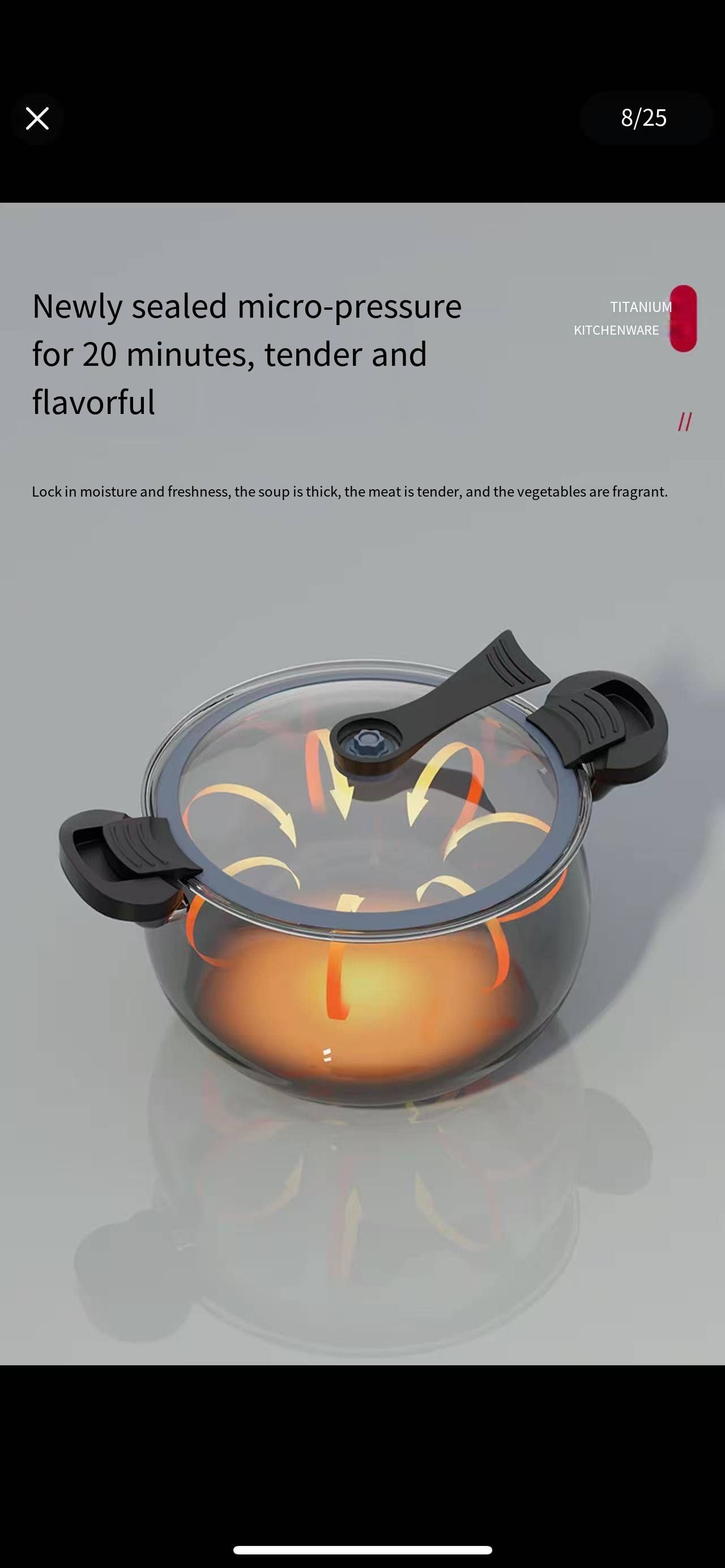 Kitchen effortless pressure quick-cooking wonder: Dual ear snap-sealed preservation structure, 5-second rapid pressure release device + uncoated titanium inner liner's micro-pressure internal circulation cooking technology. It covers various cooking scenarios such as quick-cooking and slow-cooking for family meals. It not only locks in the fresh and delicious taste and original nutrition of the ingredients, but also ensures the safety and convenience of the cooking process.