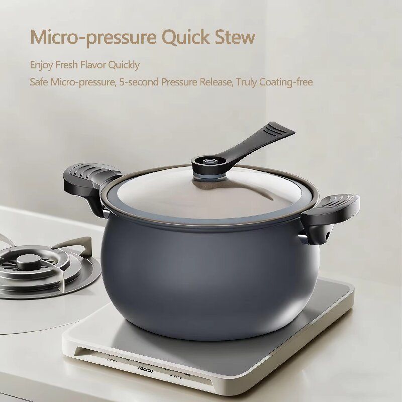 This double-ear snap-on sealed pressure slow-cooking pot is an ideal choice for enhancing the efficiency of home cooking. It adopts a micro-pressure internal circulation structure, allowing heat to evenly penetrate the ingredients, making the cooking of meat faster and more flavorful, and the soup more fresh and nutritious. The double-ear snap-on design of the pot cover ensures stable sealing, reducing steam loss, and shortening the cooking time by one-third compared to ordinary pots. The 5-second rapid pressure release function makes the operation safer, and it can quickly release the pressure by simply twisting, avoiding the risk of getting burned. The non-coated titanium inner pot is healthy and durable, not picky about ingredients, does not stick or clog, and is easier to clean. Whether it's daily soup-making, meat-cooking, porridge-making, or weekend nutritious cooking, it can provide an efficient, safe, and delicious performance, bringing a more relaxed cooking experience to your kitchen.