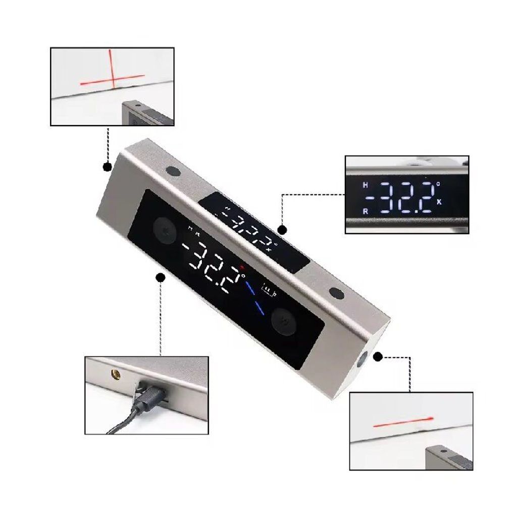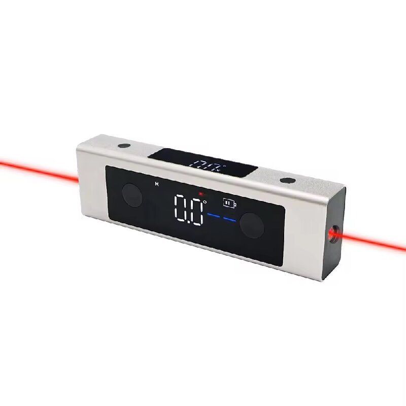 Laser level gauge, with precise projection and intuitive reading on digital display screen, compact and portable, easy to operate. Suitable for scenarios such as decoration leveling, furniture installation, and engineering angle measurement. With millimeter-level accuracy, every construction can be carried out precisely and accurately. It is an efficient tool for space measurement.