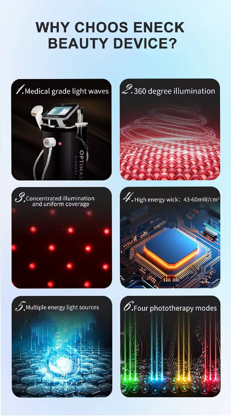 Red light mode (660nm): Directly targets the root of neck lines, promotes collagen regeneration, and gradually tightens loose neck skin, fading deep and shallow neck lines;