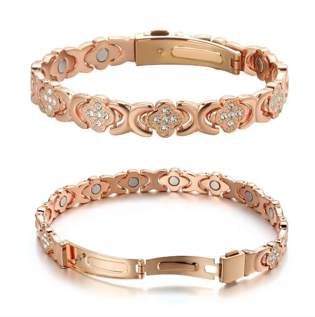 To add a touch of brilliance to your outfit while also ensuring your health? This lucky clover diamond magnetic therapy bracelet combines the four-leaf clover's lucky symbolism, the dazzling diamond design, and the gentle magnetic therapy effect into one. It is not only a stylish accessory but also a helpful health companion. Wearing it daily or giving it as a gift showcases your intention and style.