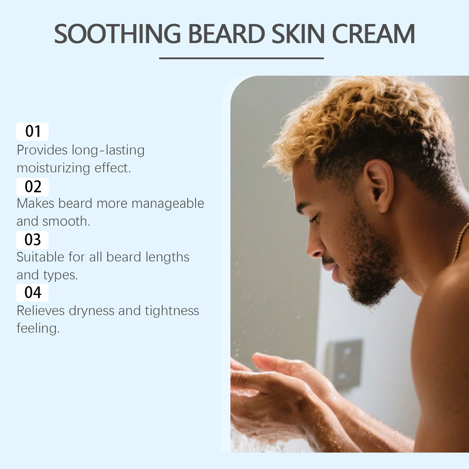 Whether it's the tiredness of the beard area after daily commutes or the dryness and roughness after staying up late, simply take an appropriate amount of this product and apply it evenly to the beard and root skin, gently massaging until absorbed. You can immediately feel the soothing and moisturizing effect - it is not sticky or burdensome, suitable for all skin types and beard types.