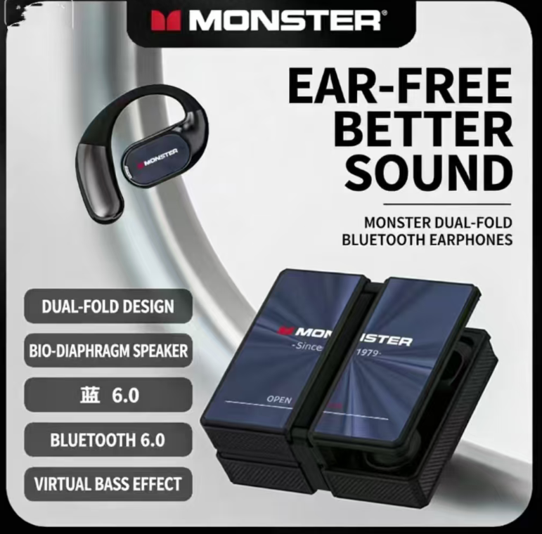 Monster's dual-fold Bluetooth headphones offer excellent performance. The over-ear design ensures a secure fit without causing ear discomfort. The biologic diaphragm and virtual bass provide powerful sound quality. The dual-fold compartment is thin enough to fit in a wallet, making it convenient for carrying during exercise, commuting, or office use. The open listening mode allows for both music enjoyment and ambient sound, making it both practical and comfortable.