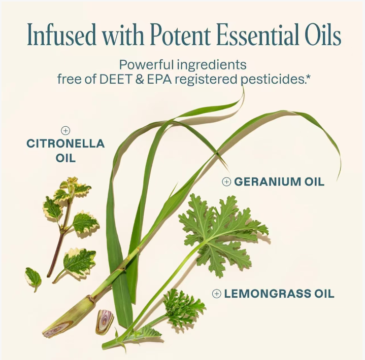 "Natural essential oil mosquito repellent, safe and non-irritating"