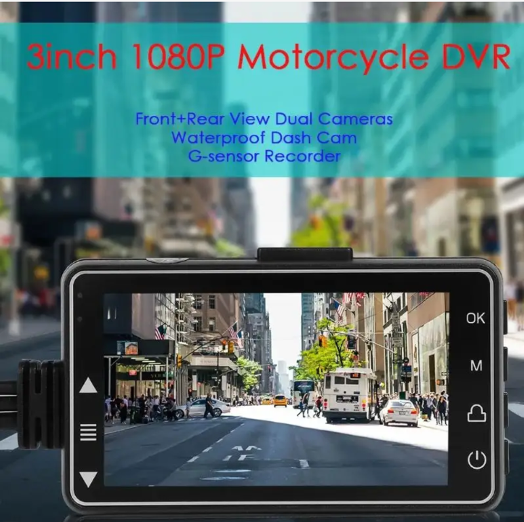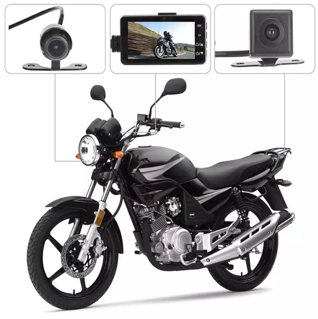 Motorcycle dual-camera recorder, riding safety shield. The front camera has a 140° ultra-wide angle to cover the front road, and the rear camera is waterproof to monitor the rear risks, addressing the problem of blind areas. A 3-inch screen allows real-time viewing of the footage, with loop recording and collision lock to prevent data loss even when wearing gloves. It is compatible with various motorcycles. It can handle accident evidence collection and store all riding images.